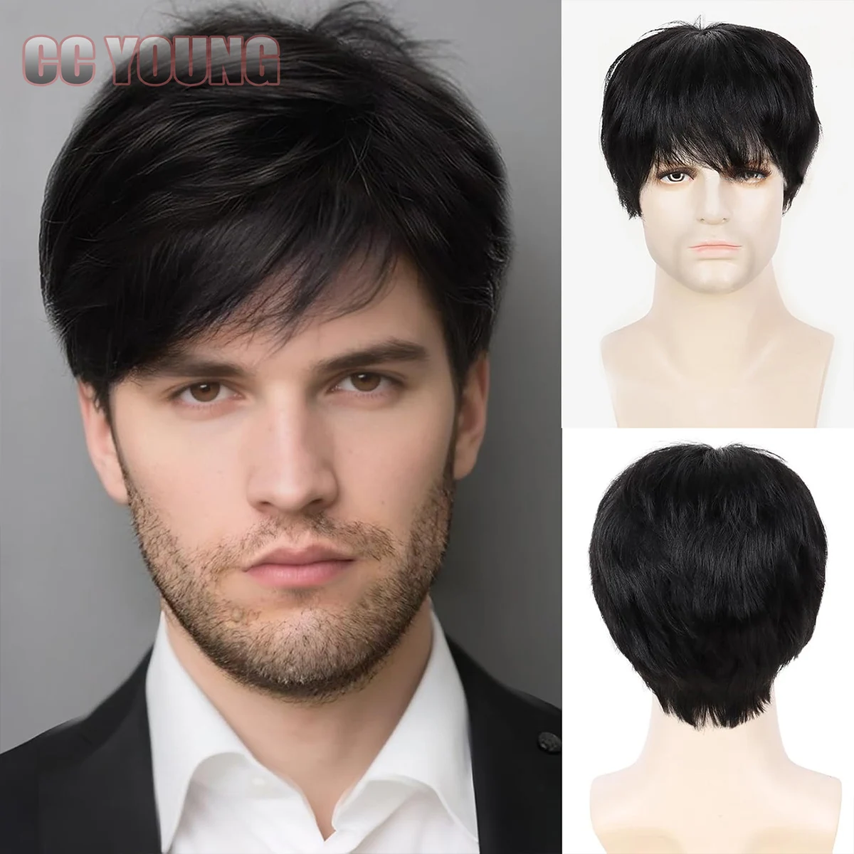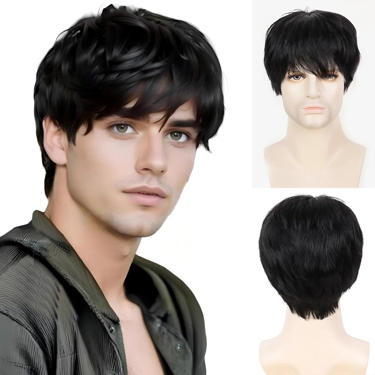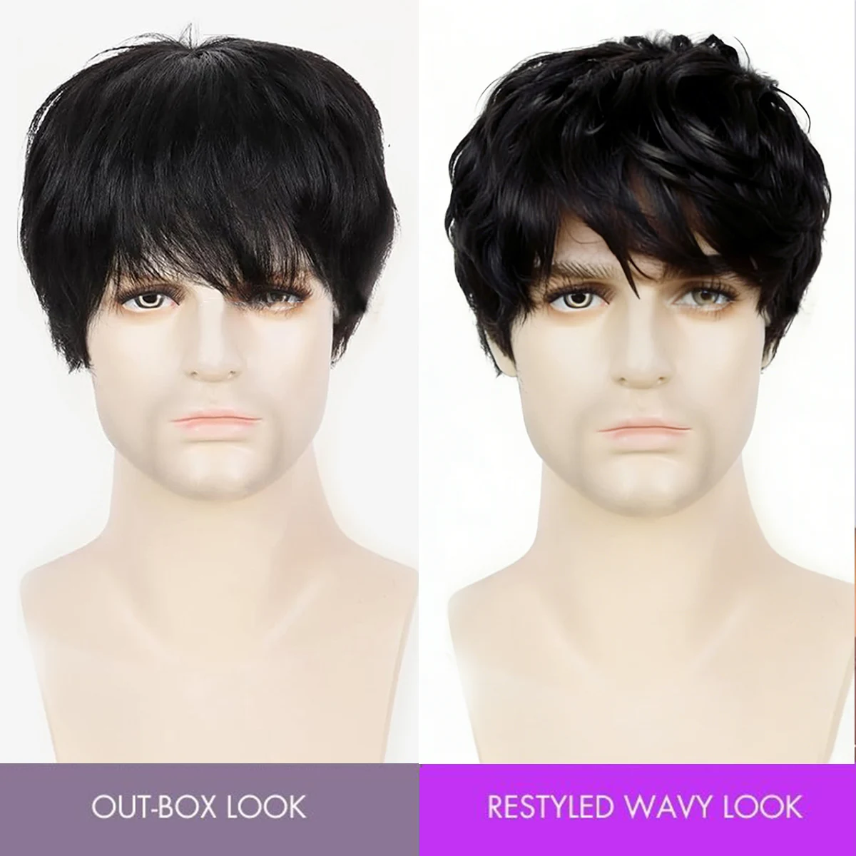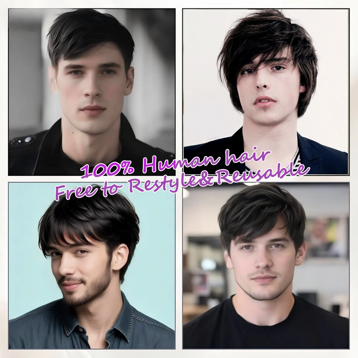💇♂️ Peruca Masculina Curta de Cabelo Humano Remy Natural Sem Cola com Franja