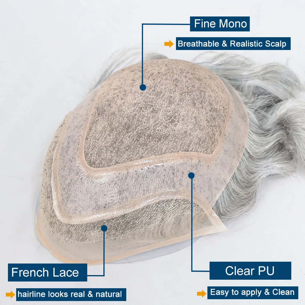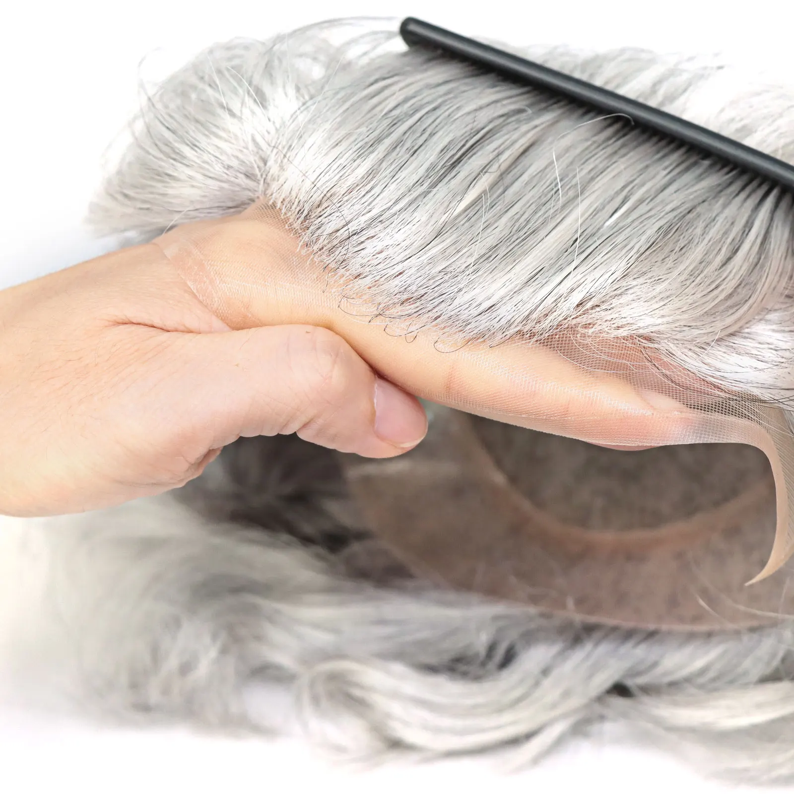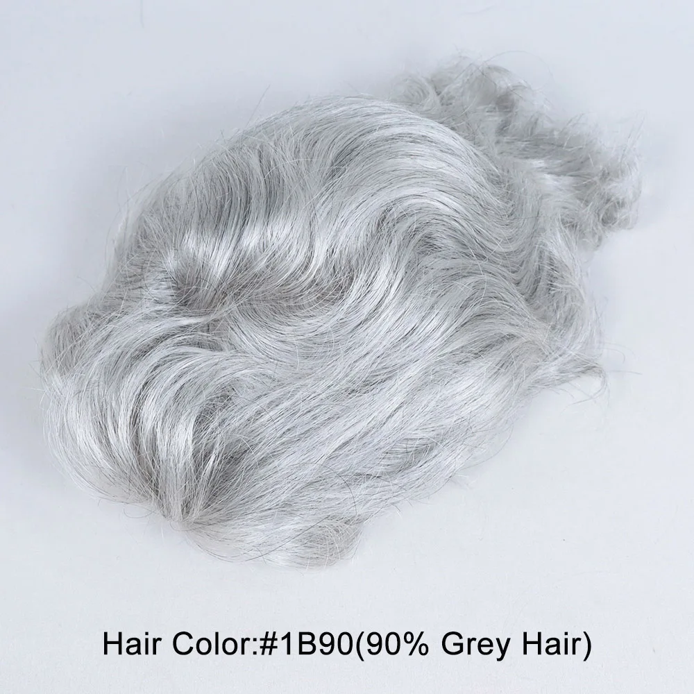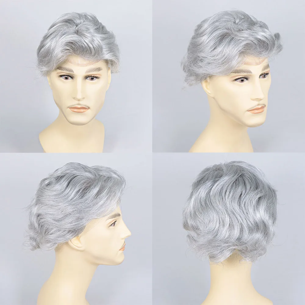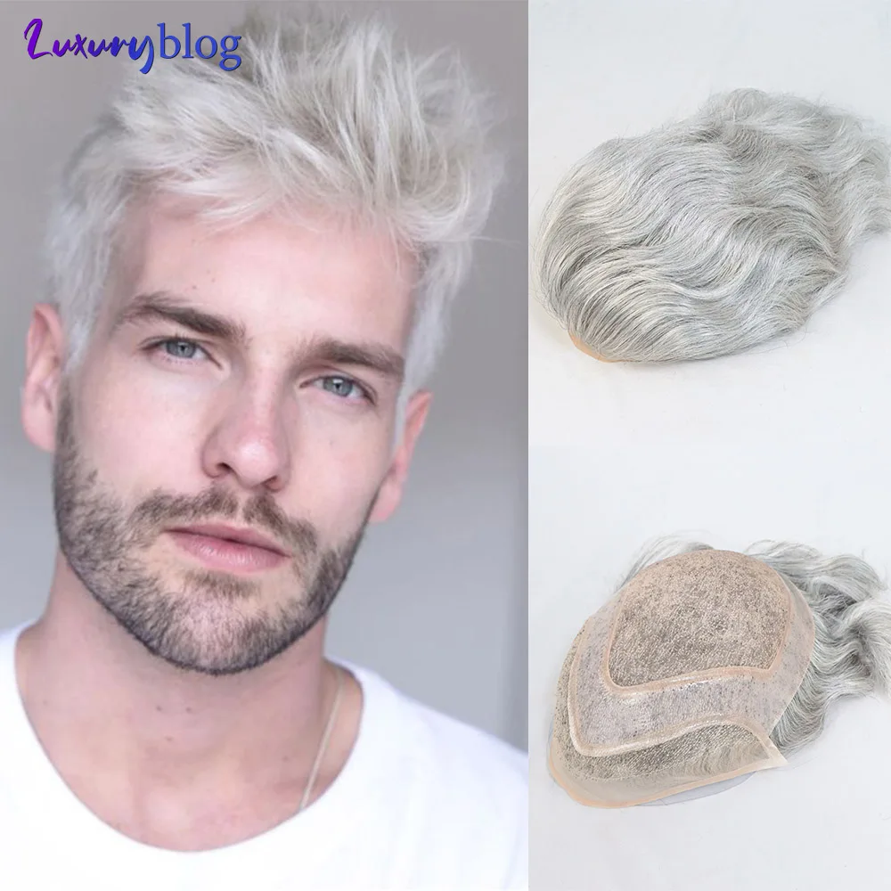 🧔♂️✨ Peruca Masculina de Cabelo Humano Branco Prateado com Ondas e Linha Frontal Natural ✨