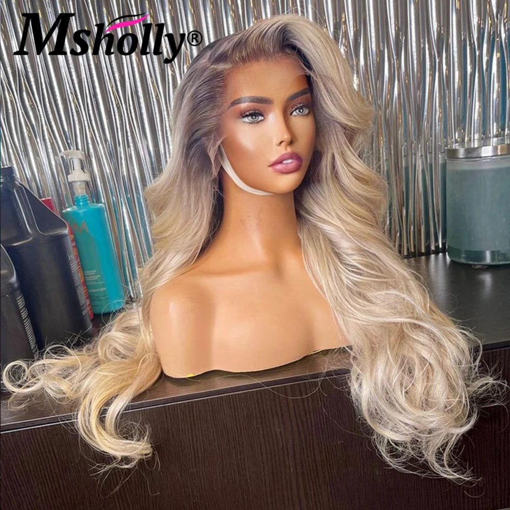 ✨ Peruca Ombre Loiro Acinzentado 100% Cabelo Humano · Frontal de Renda Transparente 13×4 · Onda Corporal · Densidade 180% ✨