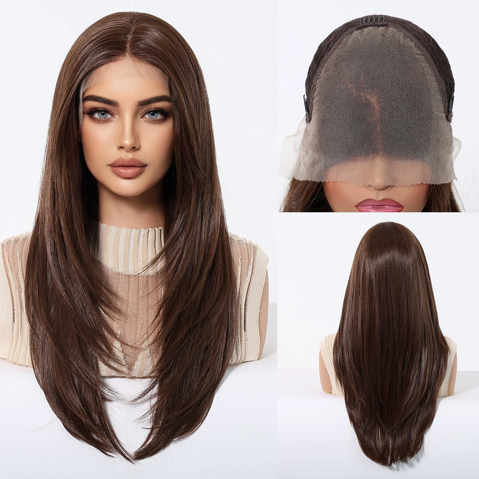 Renove seu visual com uma peruca sintética ombré marrom lisa de alta densidade, confortável e fácil de usar. Um toque profissional no seu dia a dia — sem complicações.