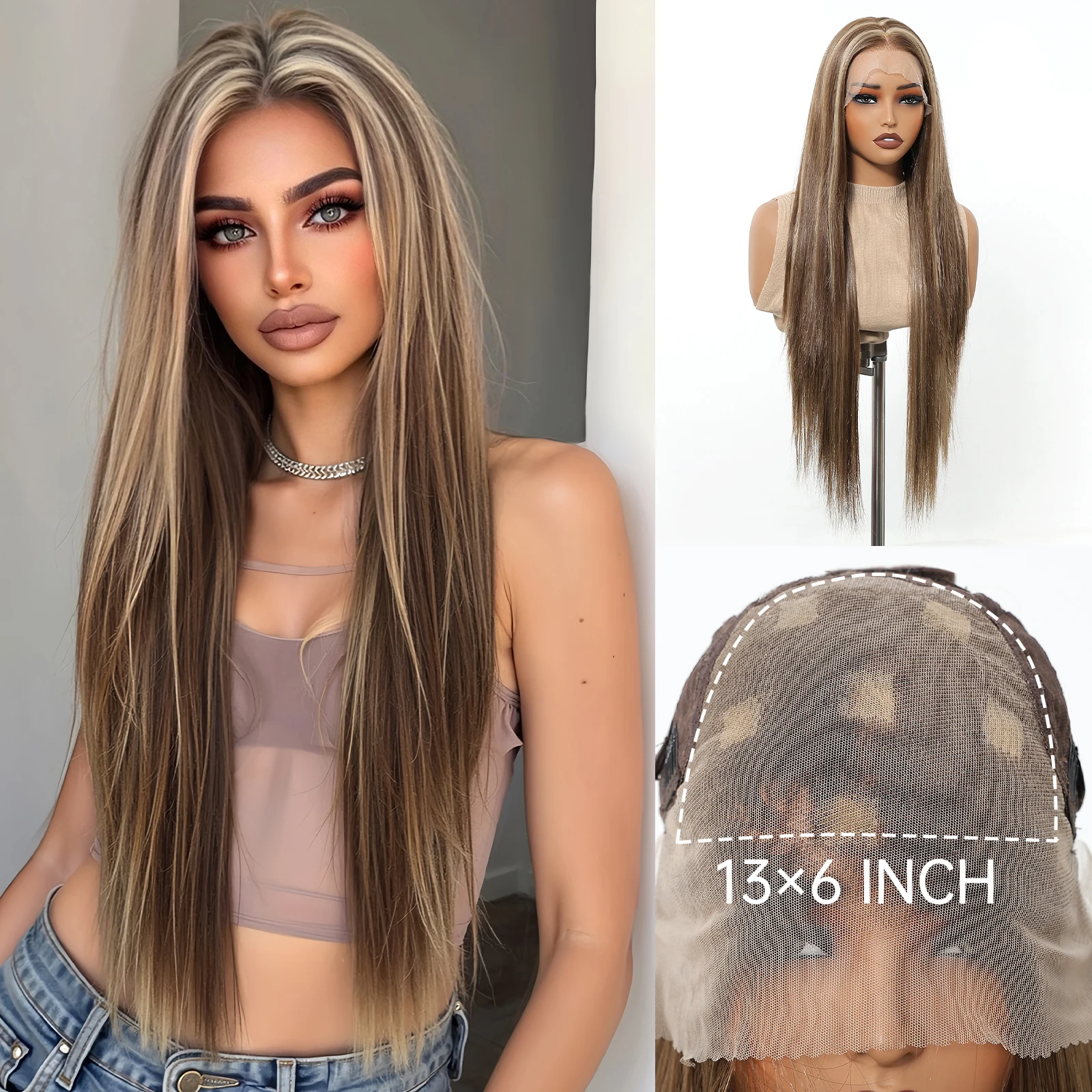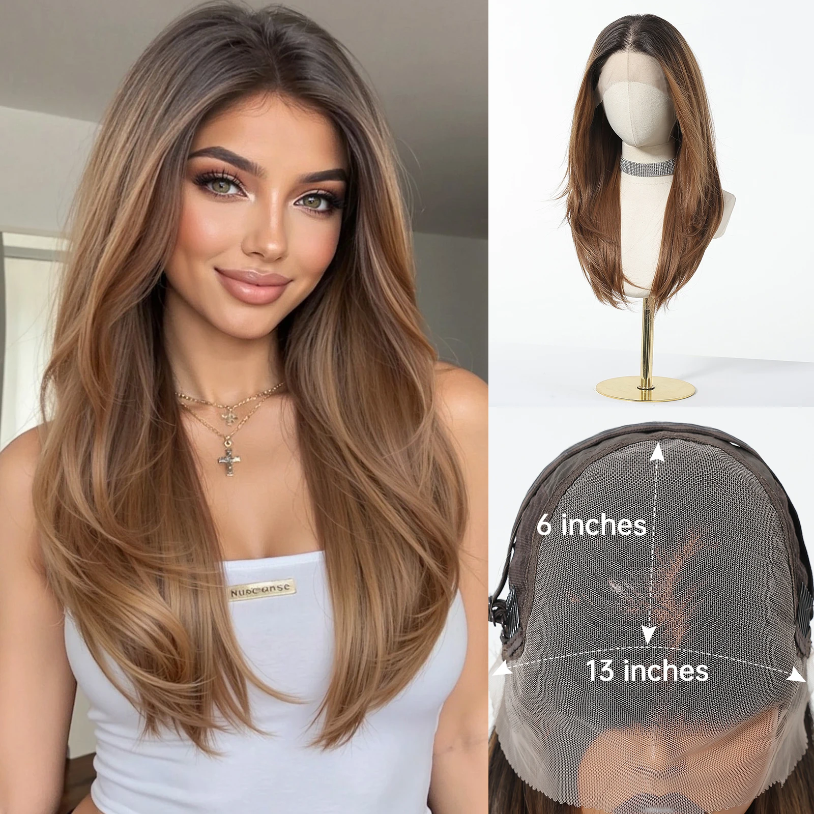 💁🏽♀️✨ Peruca Ombre Marrom Lisa com Renda HD 13×6 Transparente – Linha Frontal Natural e Parte Livre