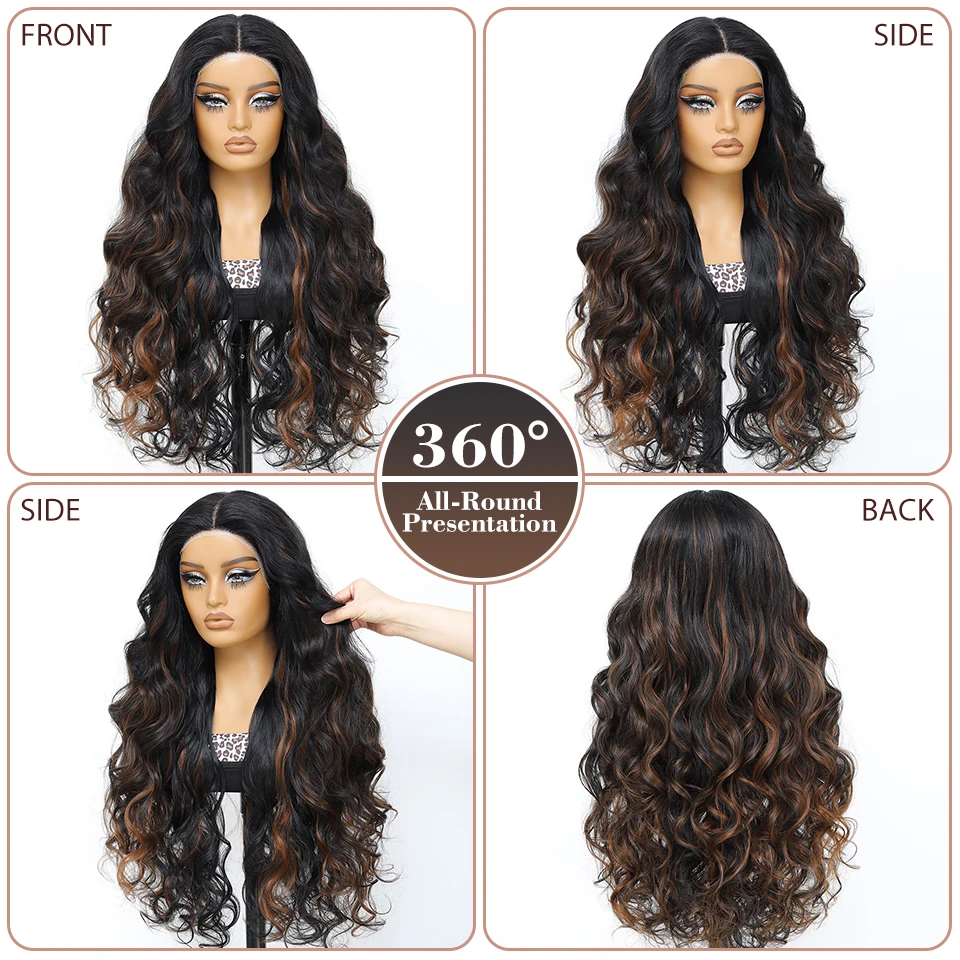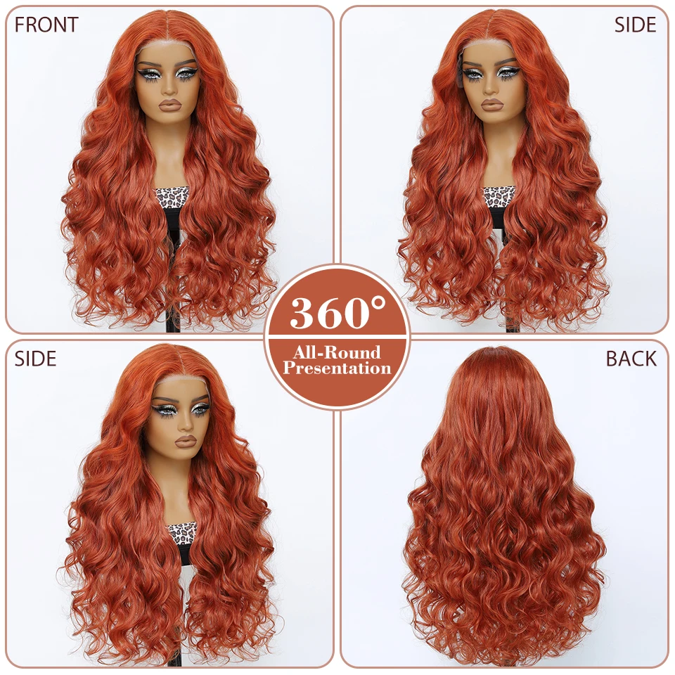 💁🏽♀️🔥 Peruca Sintética 28 Polegadas com Renda Frontal em T – Ondas Soltas Profundas Ombré com Mechas Cobre, Efeito Natural e Volume Luxuoso