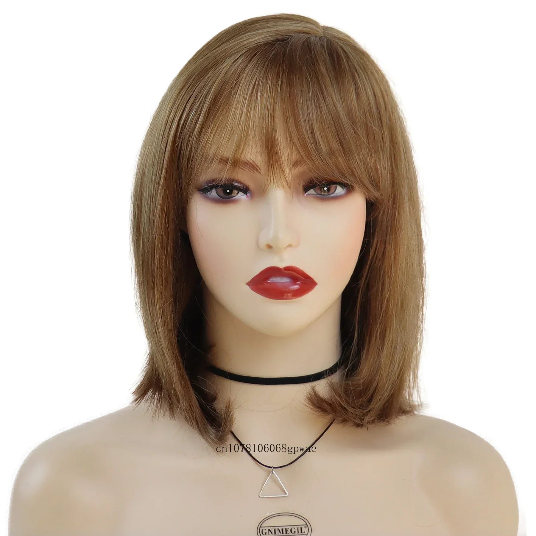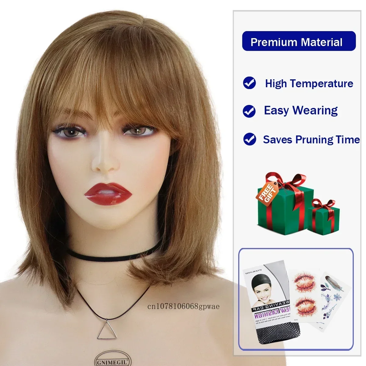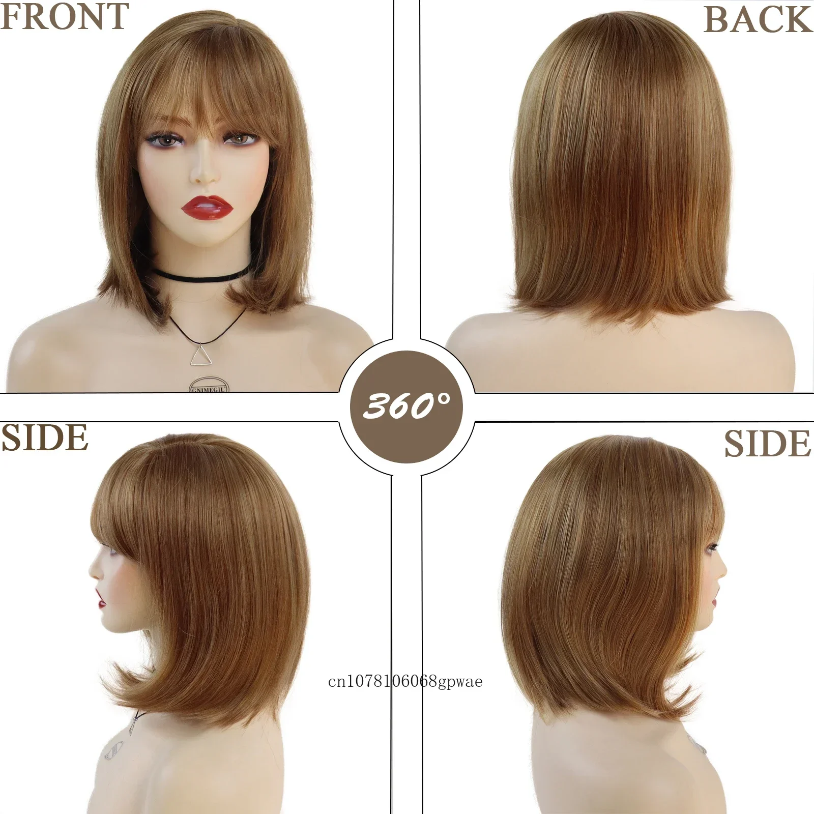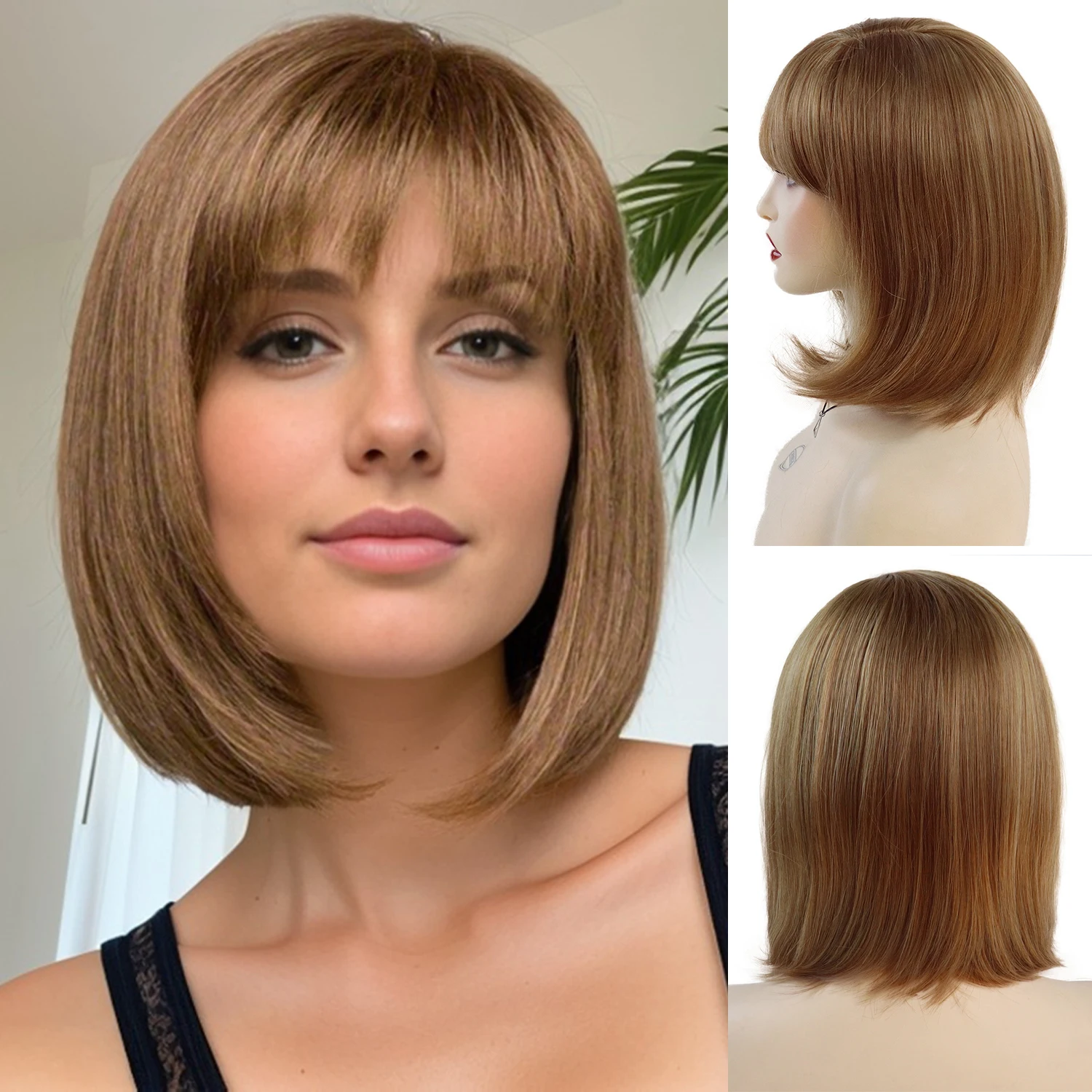✨ Peruca Sintética Bob Curta 13” Marrom Mesclado com Franja – Elegância Natural e Conforto Diário ✨