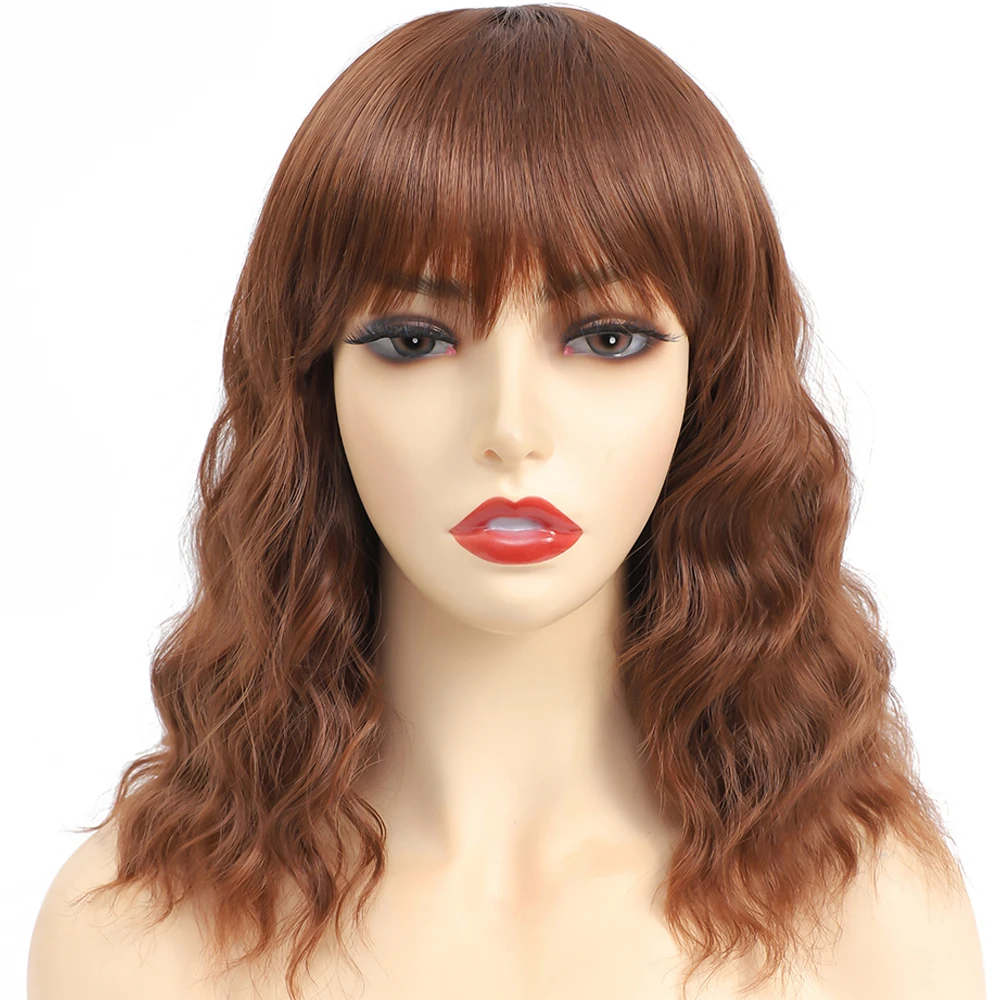 Moderna, elegante e prática: a peruca bob curta ondulada com franja é perfeita para transformar seu visual em minutos, com acabamento natural e toque macio. Ideal para quem busca estilo sem complicação. 💖