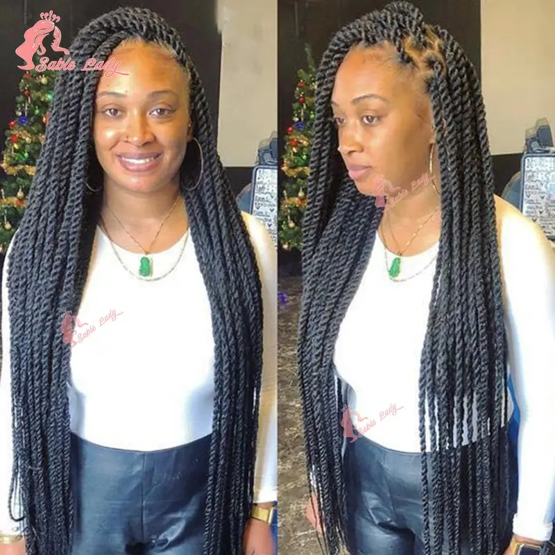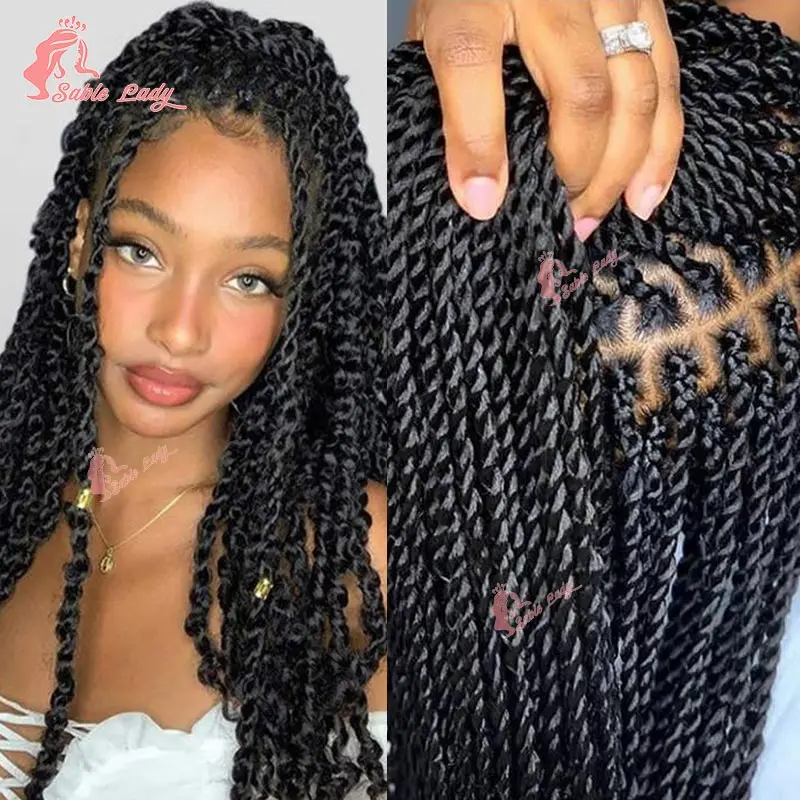 ✨ Peruca Sintética com Trança Senegalesa Torcida – Full Lace Frontal – Box Braids Sem Nós para Mulheres Negras ✨