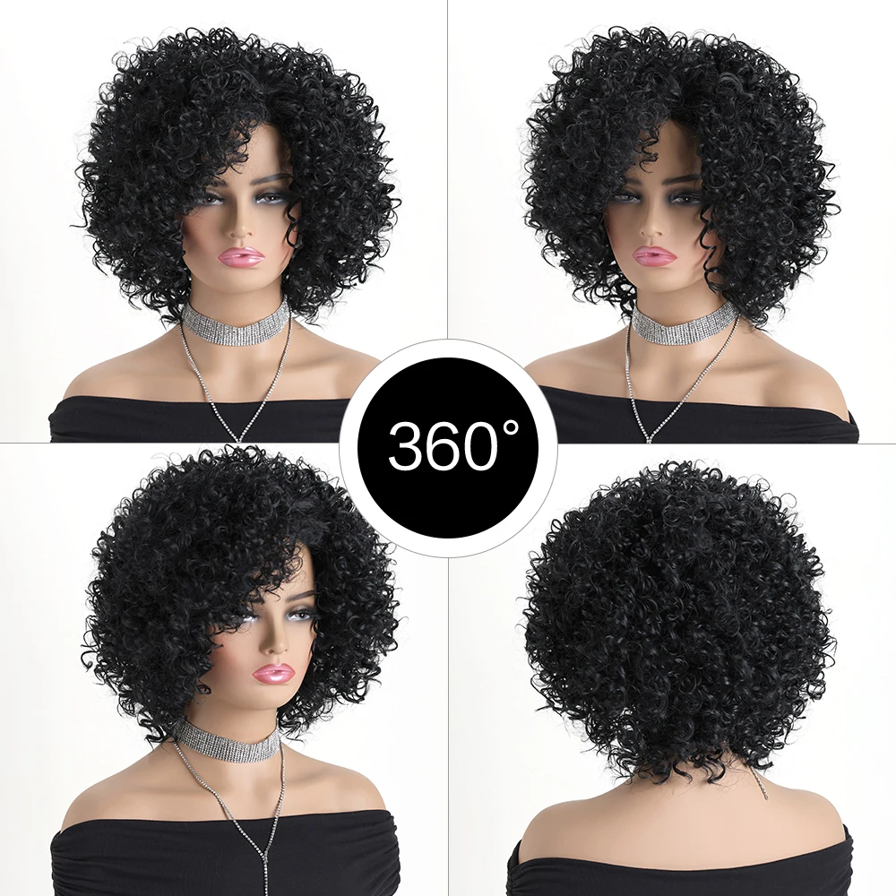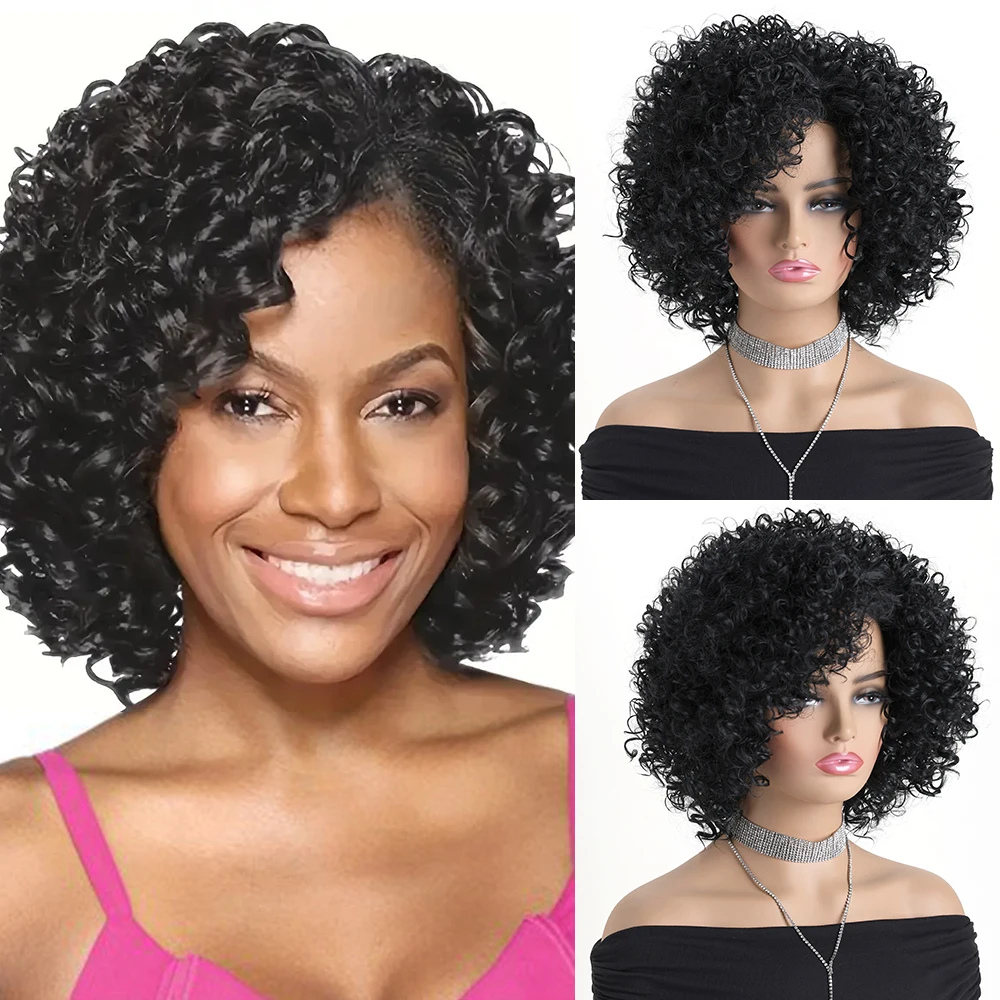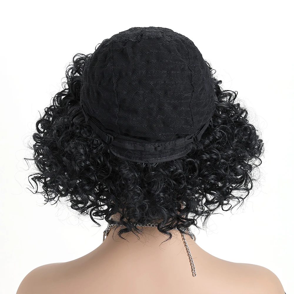 ✨ Peruca Sintética Curta Cacheada Preta 12 Polegadas com Aparência Natural ✨