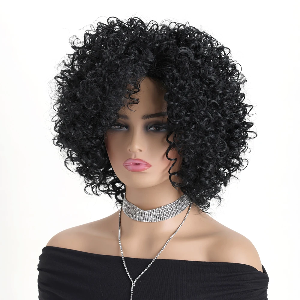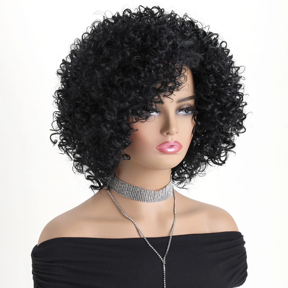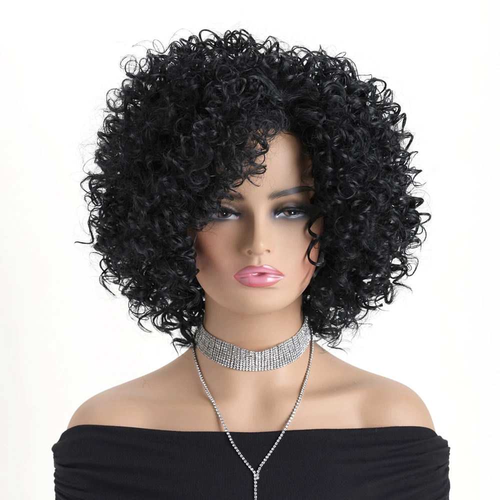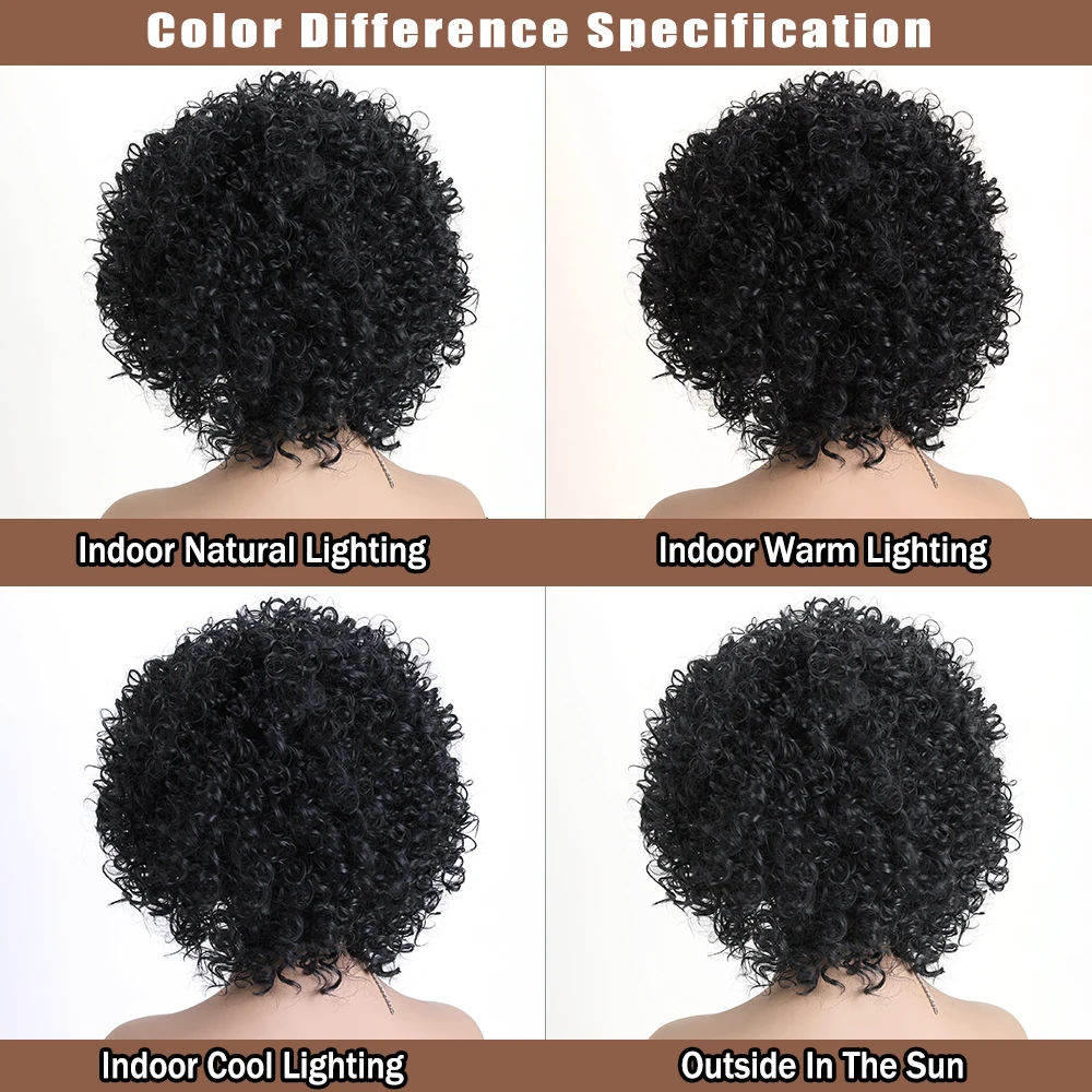 ✨ Peruca Sintética Curta Cacheada Preta 12 Polegadas com Aparência Natural ✨