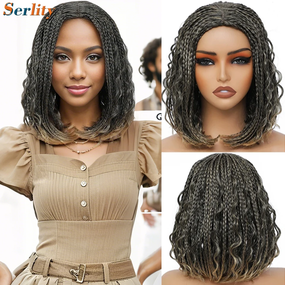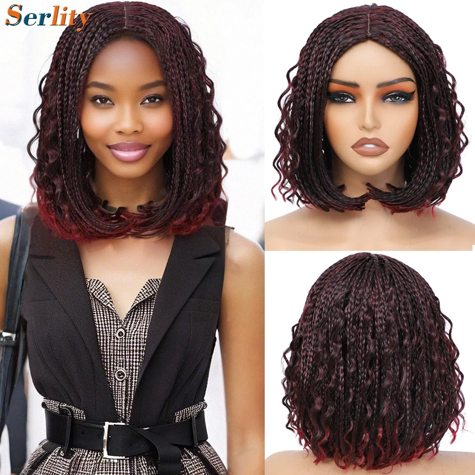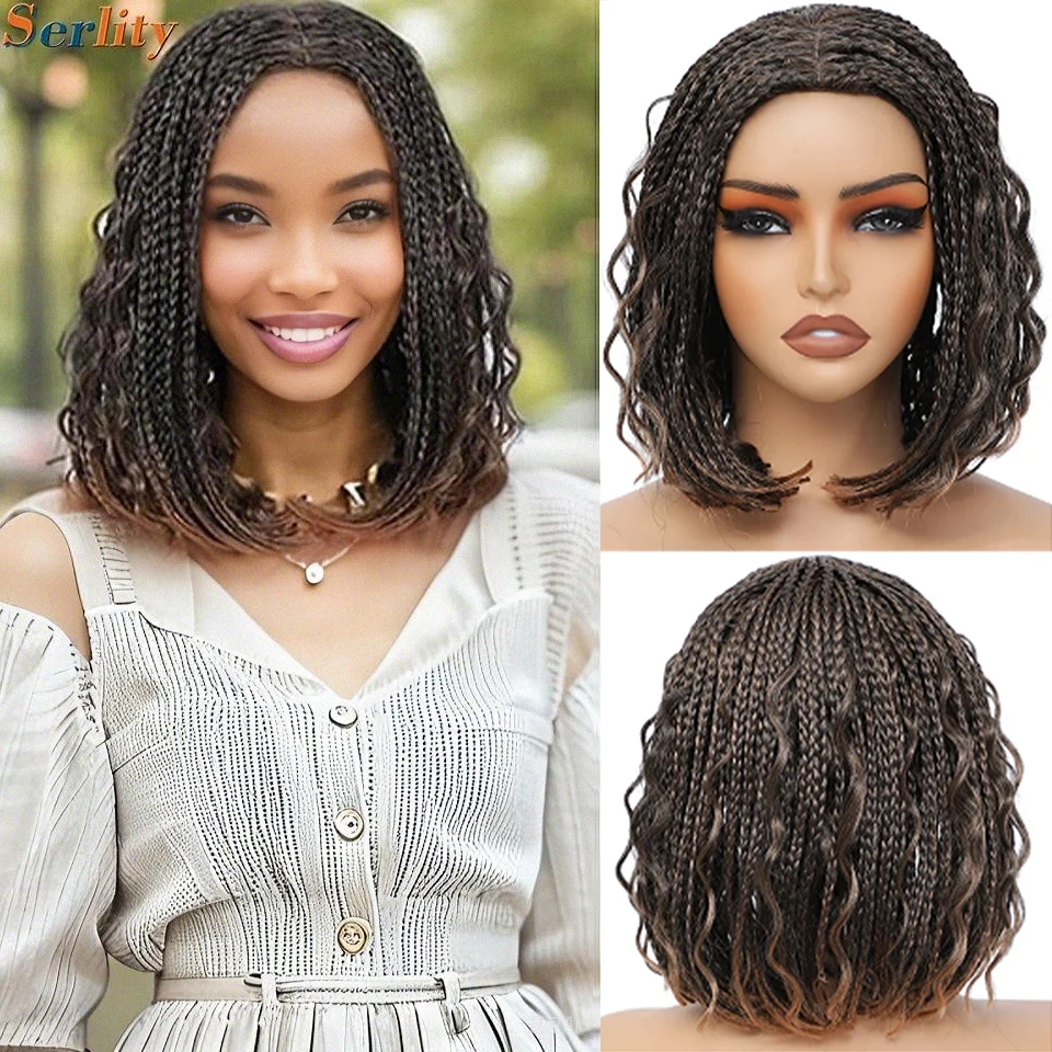 💁♀️ Peruca Sintética Curta com Tranças Box Boho Cacheadas – Estilo Bob, 12” | Cores Ombré Preto, Gengibre, Marrom e Bordô
