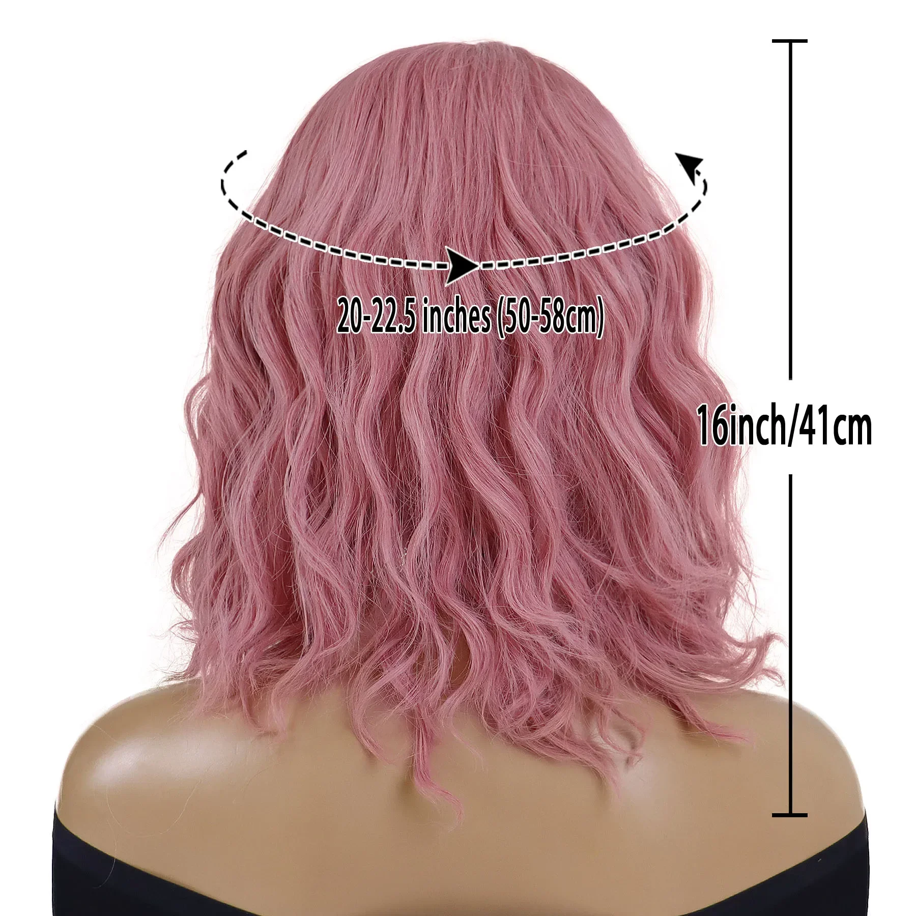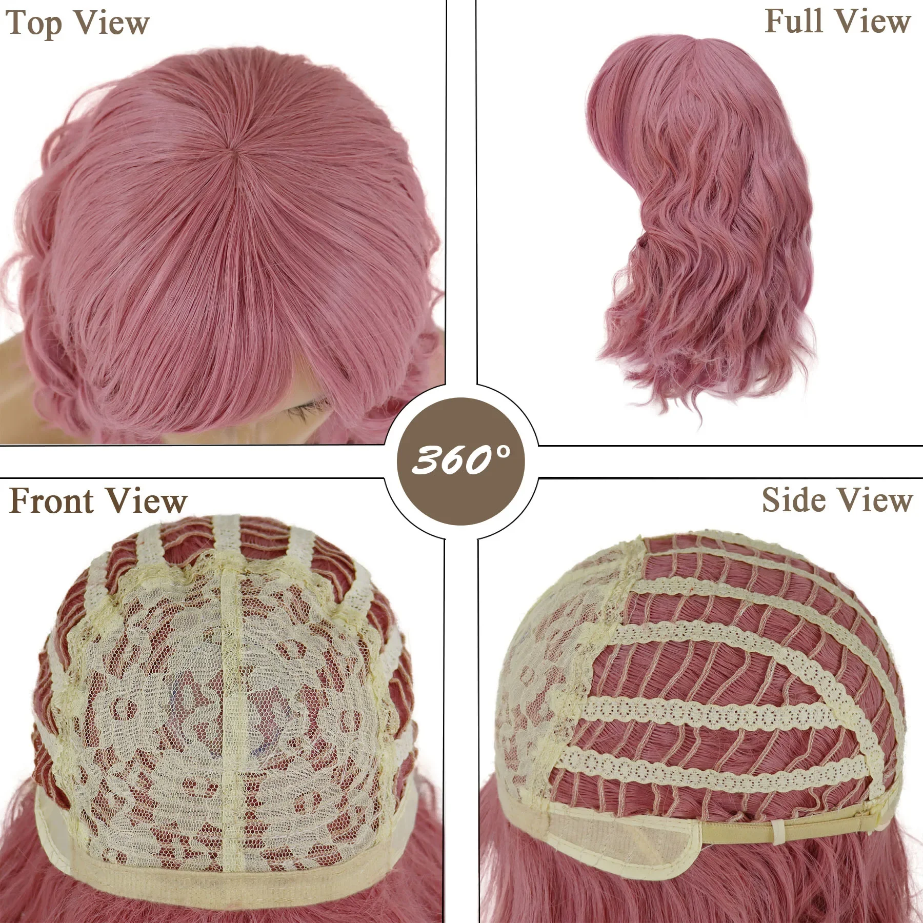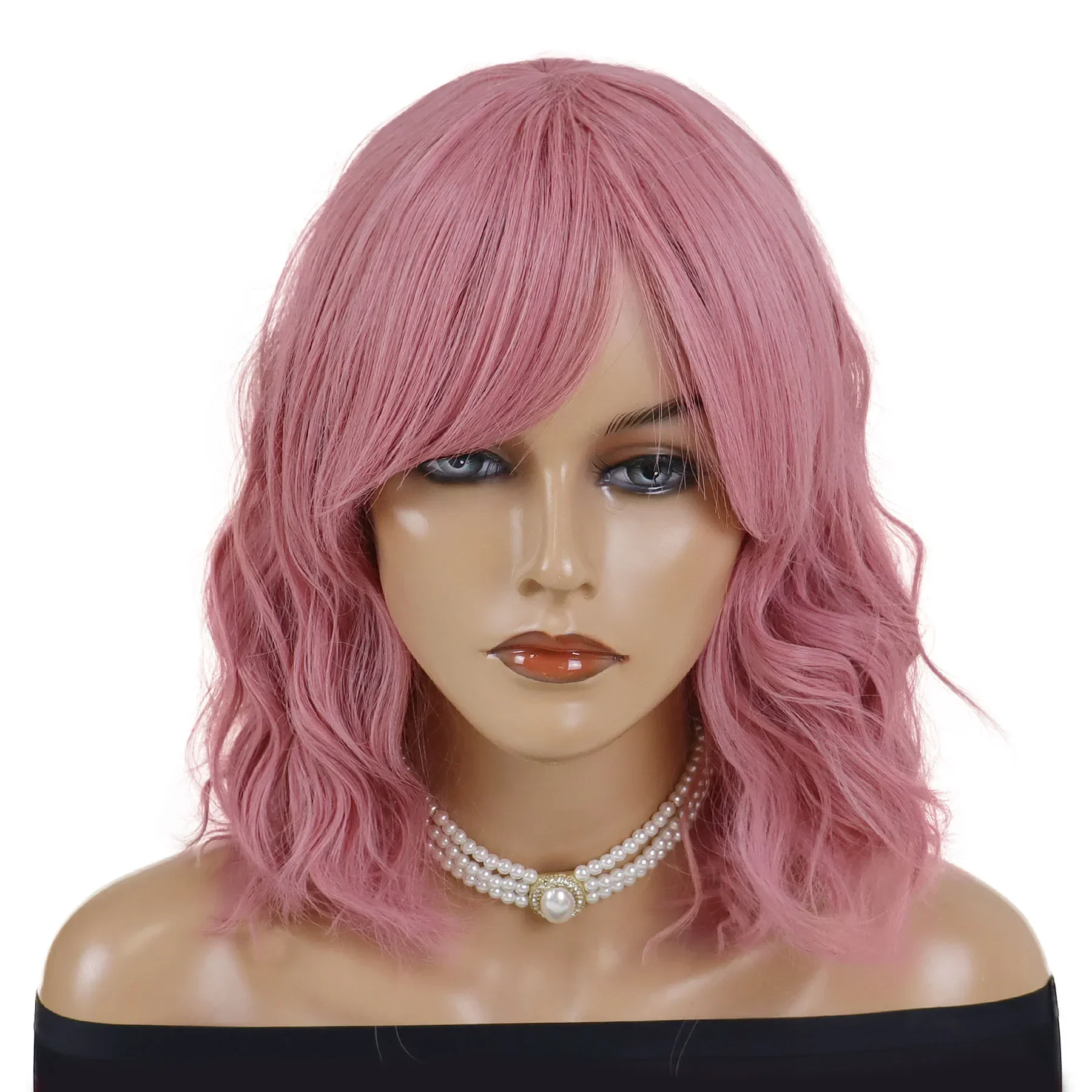 Perucas Peruca Sintética Curta Ondulada até o Ombro com Franja Lateral Rosa para Cosplay, Halloween e Festas Femininas | Loja dos Cabelos