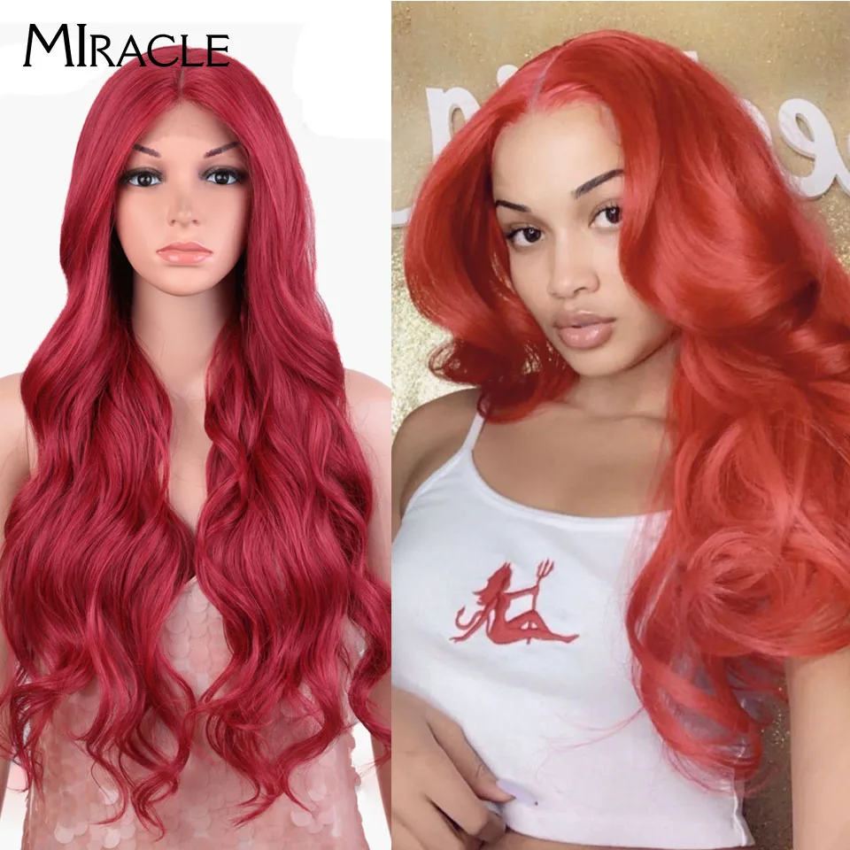 🎭 Peruca Sintética de Renda Frontal 360 Longa Ondulada 30″ – Loira ou Vermelha