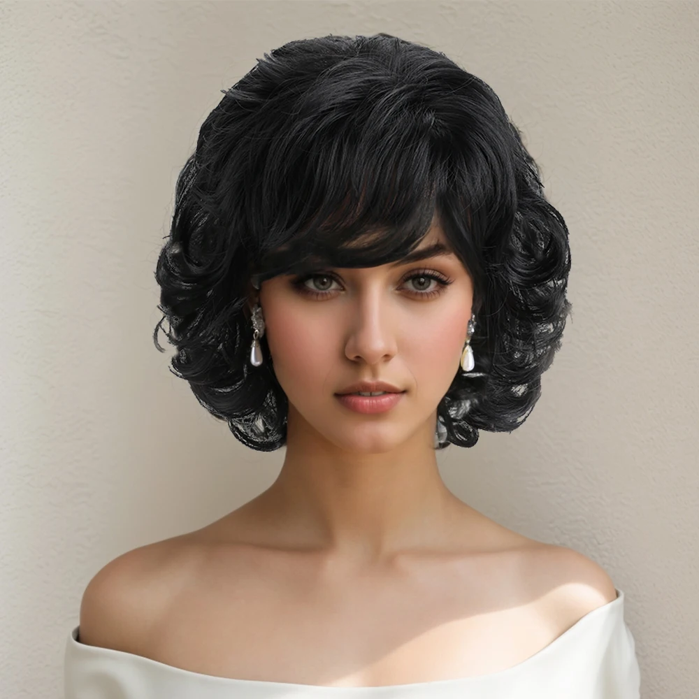 Esta peruca curta preta com cachos suaves é perfeita para quem deseja um visual moderno, natural e fácil de usar. Ideal para o dia a dia, eventos sociais e festas, ela valoriza o rosto com leveza e conforto.
