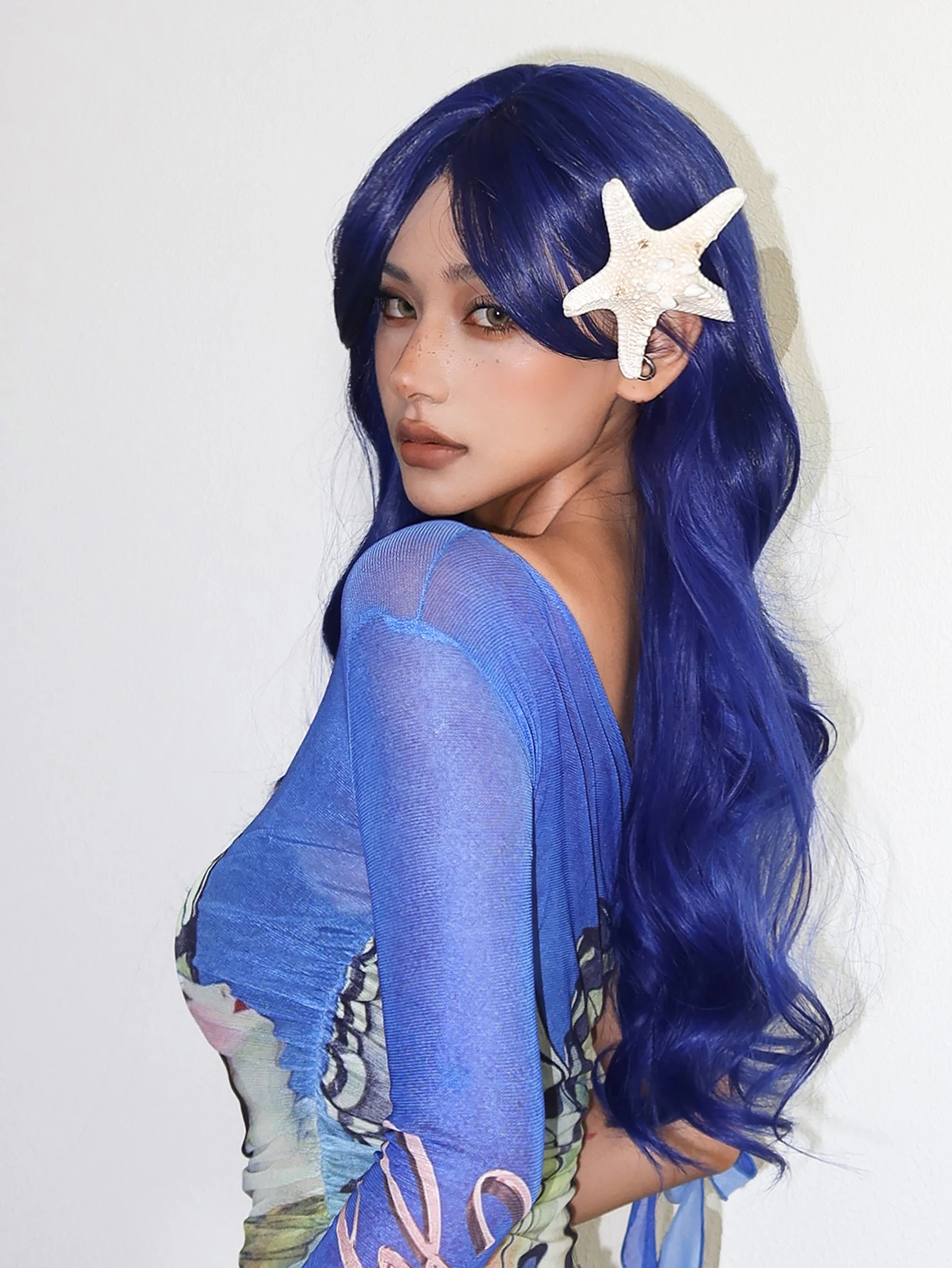 A TINY LANA apresenta uma peruca sintética longa e encaracolada com franja, perfeita para quem busca um visual ousado e versátil. Com o encantador tom azul profundo e cabelo ondulado, esta peruca adiciona volume e estilo a qualquer ocasião, seja para cosplay, festas temáticas ou um visual diferenciado no dia a dia!