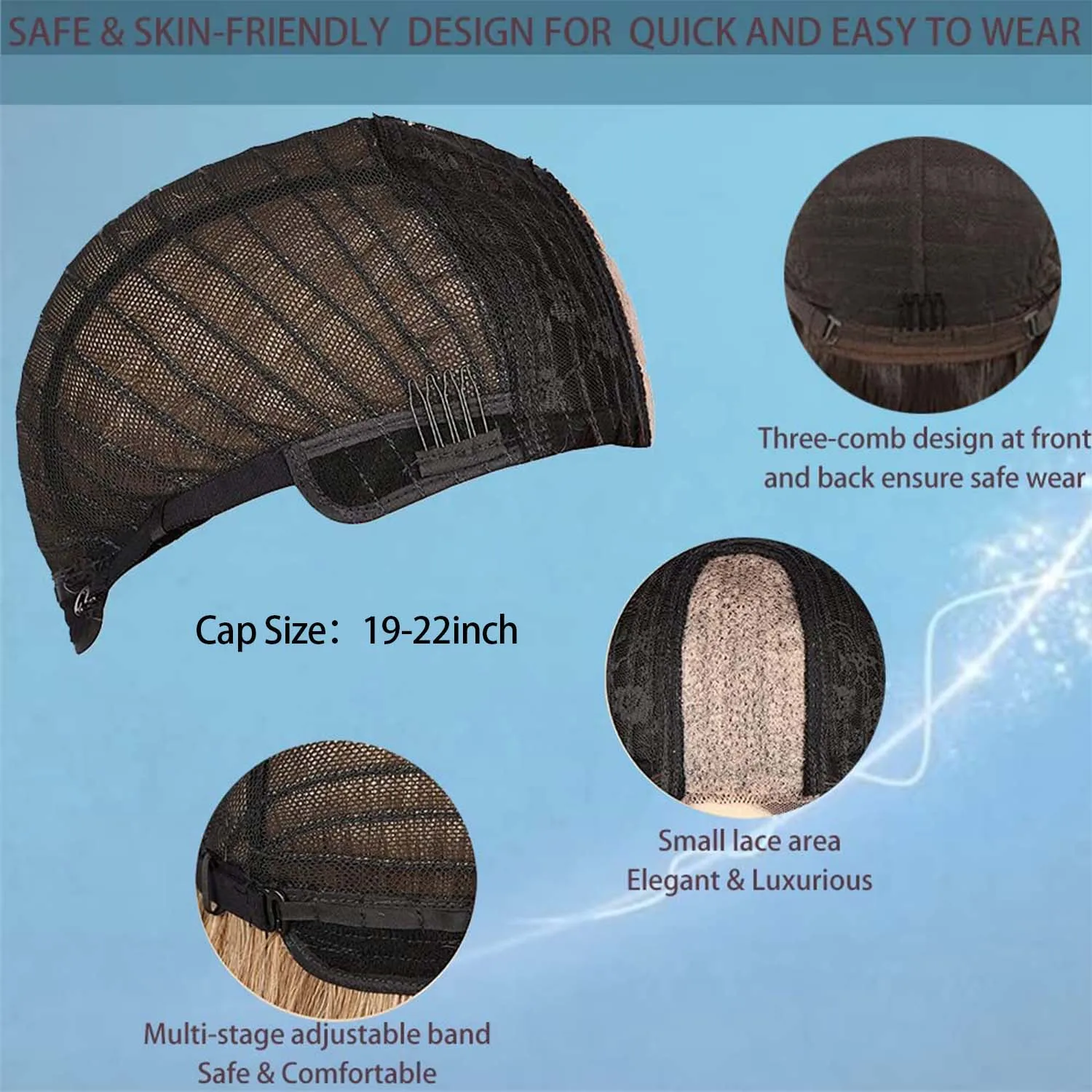 - Tamanho da touca: Ajustável, entre 19 e 22 polegadas.