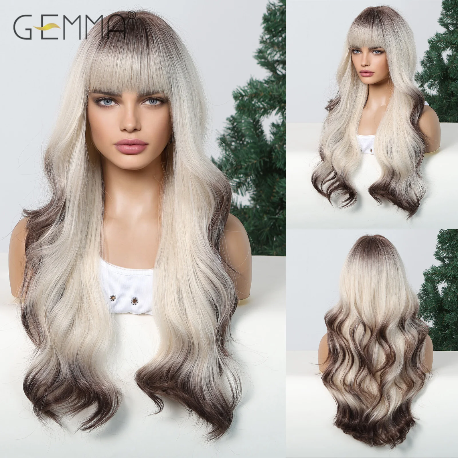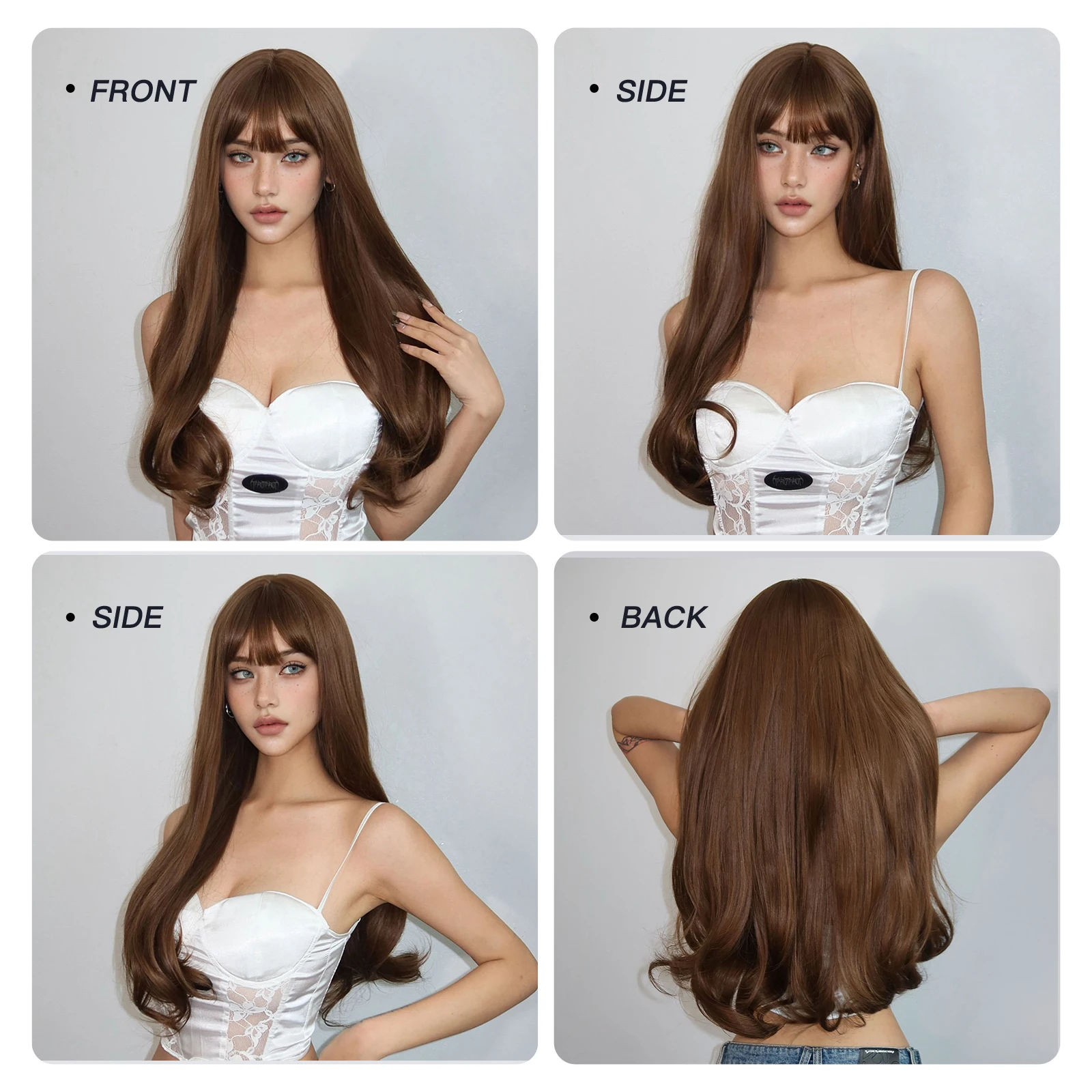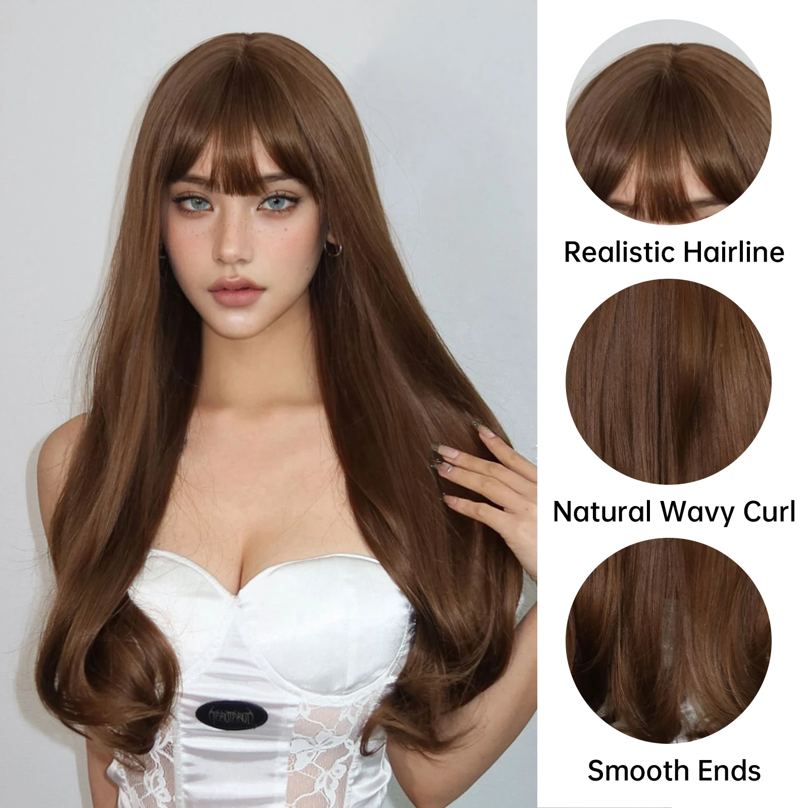 💁♀️ Peruca Sintética Longa Ondulada com Franja – Fibra Resistente ao Calor, Uso Diário e Cosplay 💁♀️