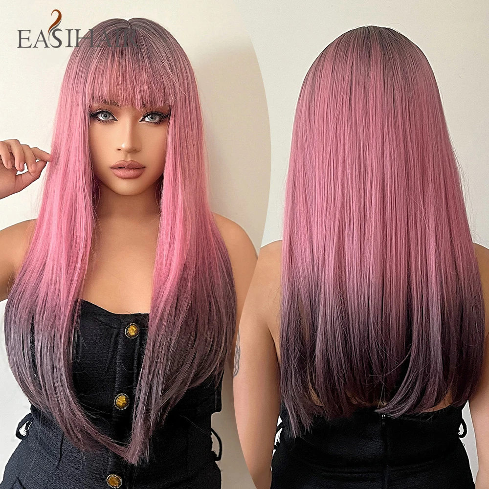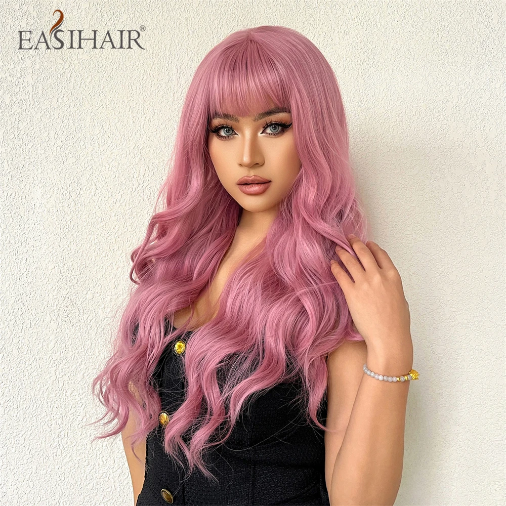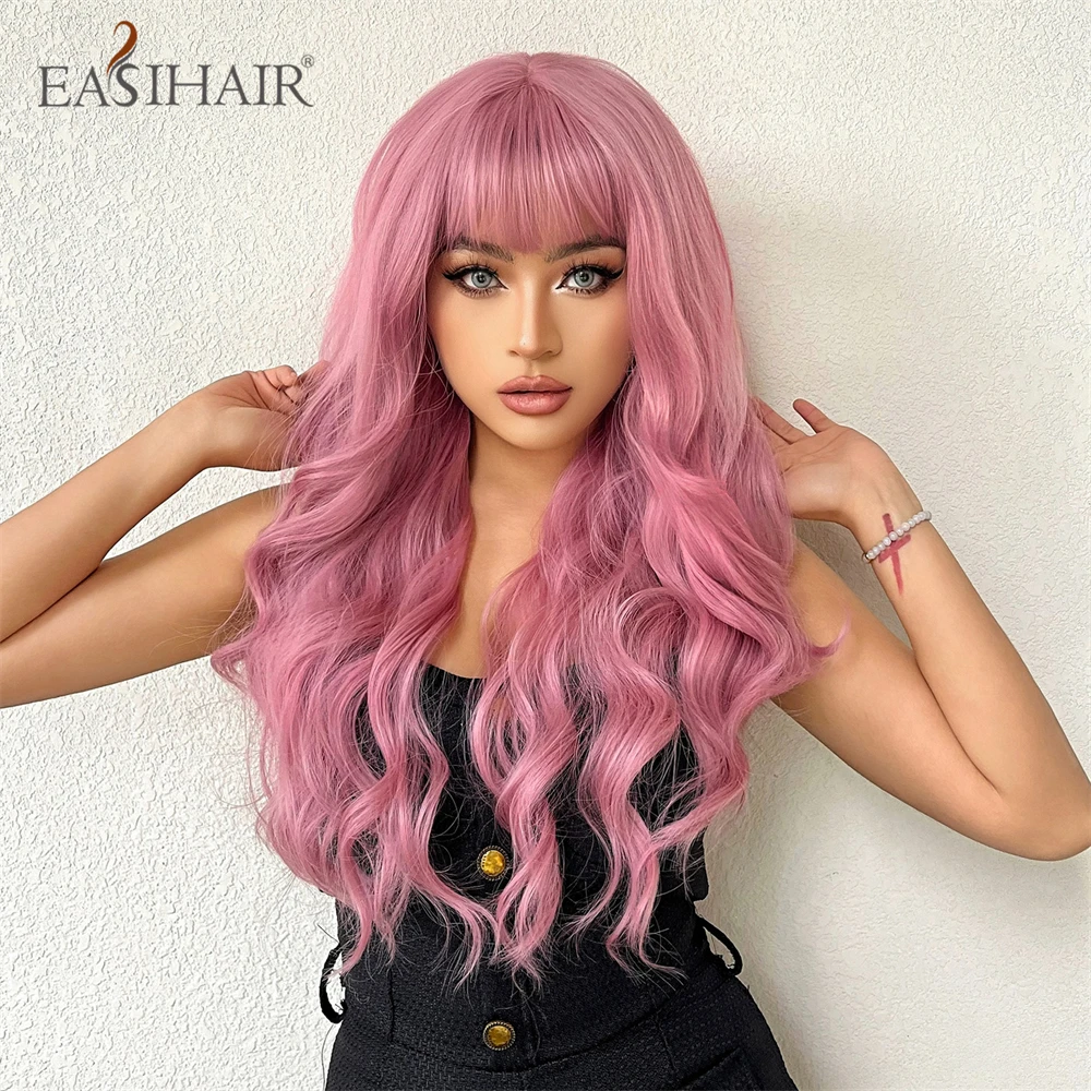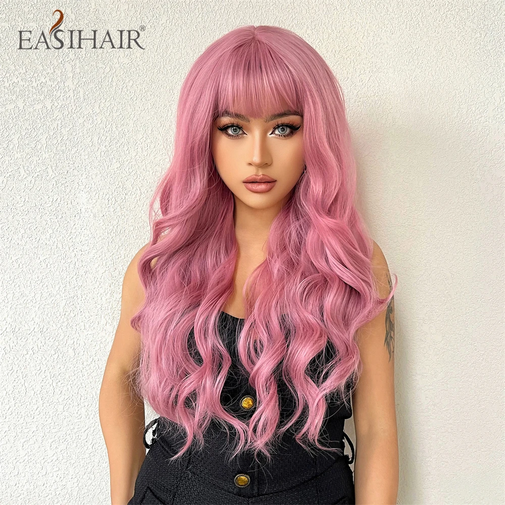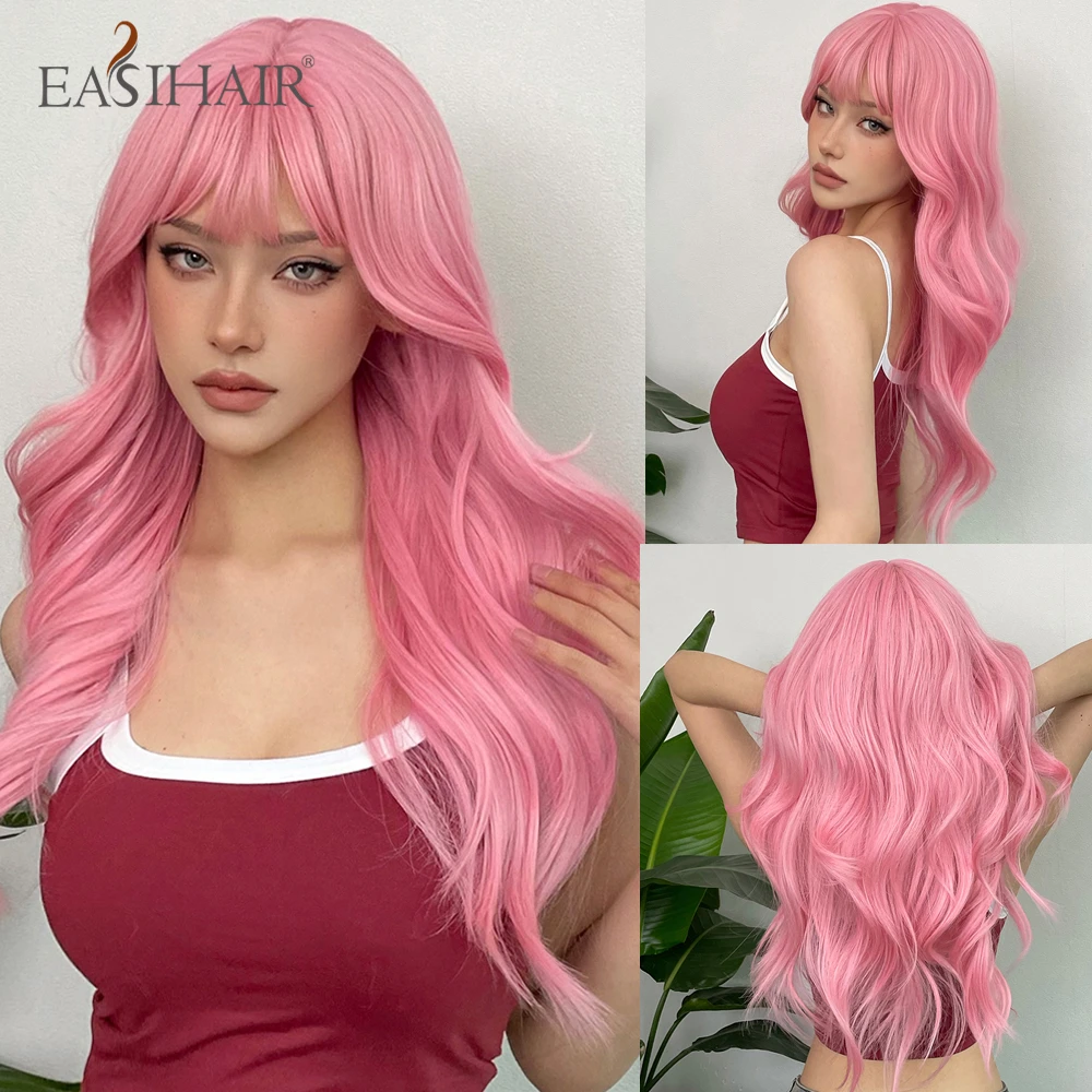 💖 Peruca Longa Ondulada Rosa com Franja: Ideal para Cosplay, Lolita e Festas!