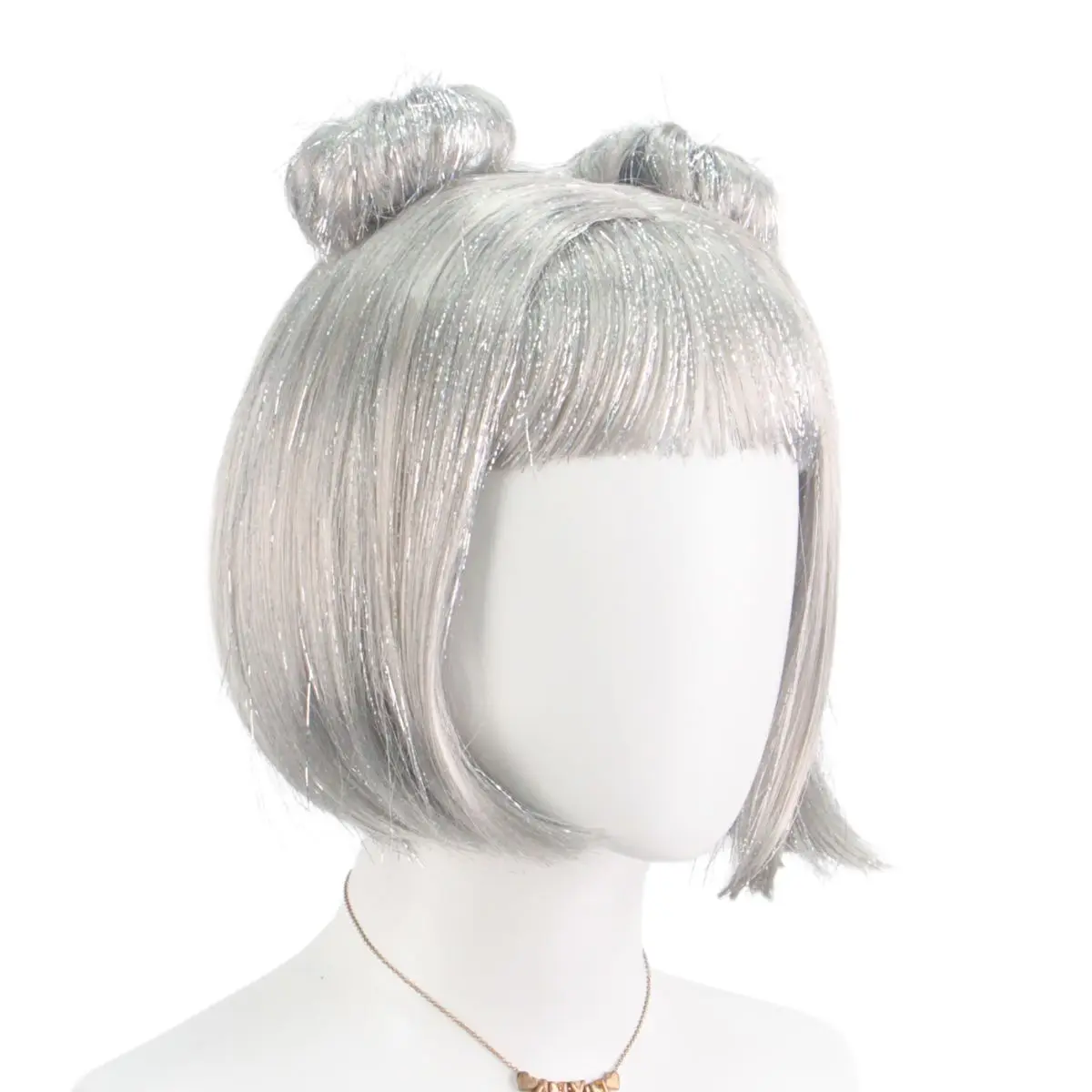 ✨ Peruca Sintética Prateada Curta Estilo Coque Redondo ✨