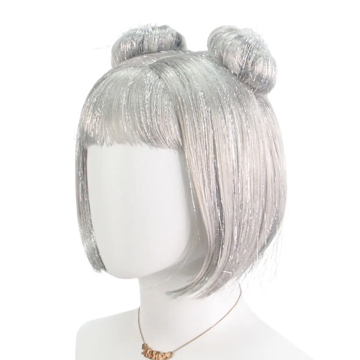 Transforme seu visual em segundos com esta peruca sintética prateada, moderna e elegante, no estilo coque redondo. Ideal para quem busca um look diferenciado para festas, fantasias, eventos temáticos ou uso ocasional, sem abrir mão do conforto e da naturalidade.