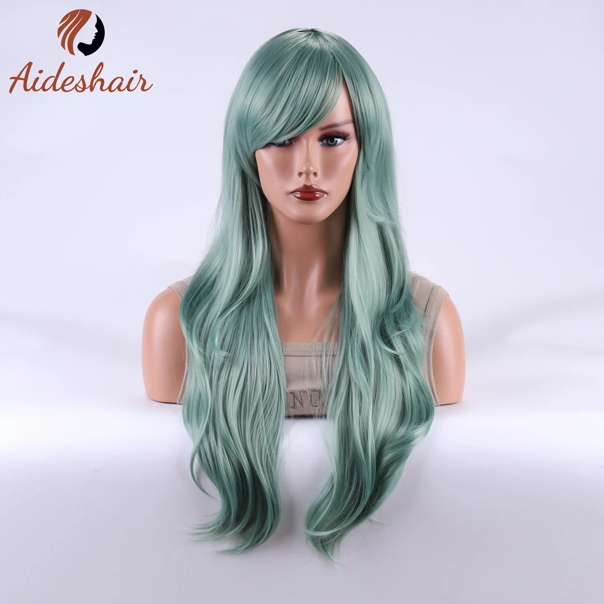 1x Peruca Sintética Verde Longa Ondulada