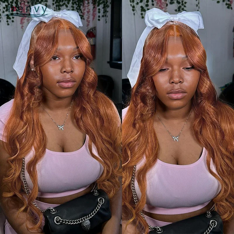 ✨ I-Envy – Peruca de Cabelo Humano com Renda Transparente 13X6, Cor Laranja Gengibre, Onda do Corpo e Encaracolada, 16-32 Polegadas ✨