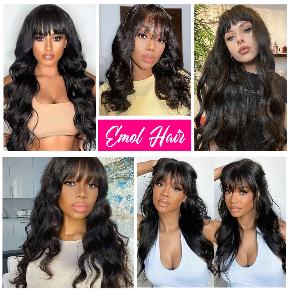 Perucas Perucas de Cabelo Indiano com Franja – Onda do Corpo, Máquina Feita, Remy, Preto Natural, 8-30 polegadas | Loja dos Cabelos