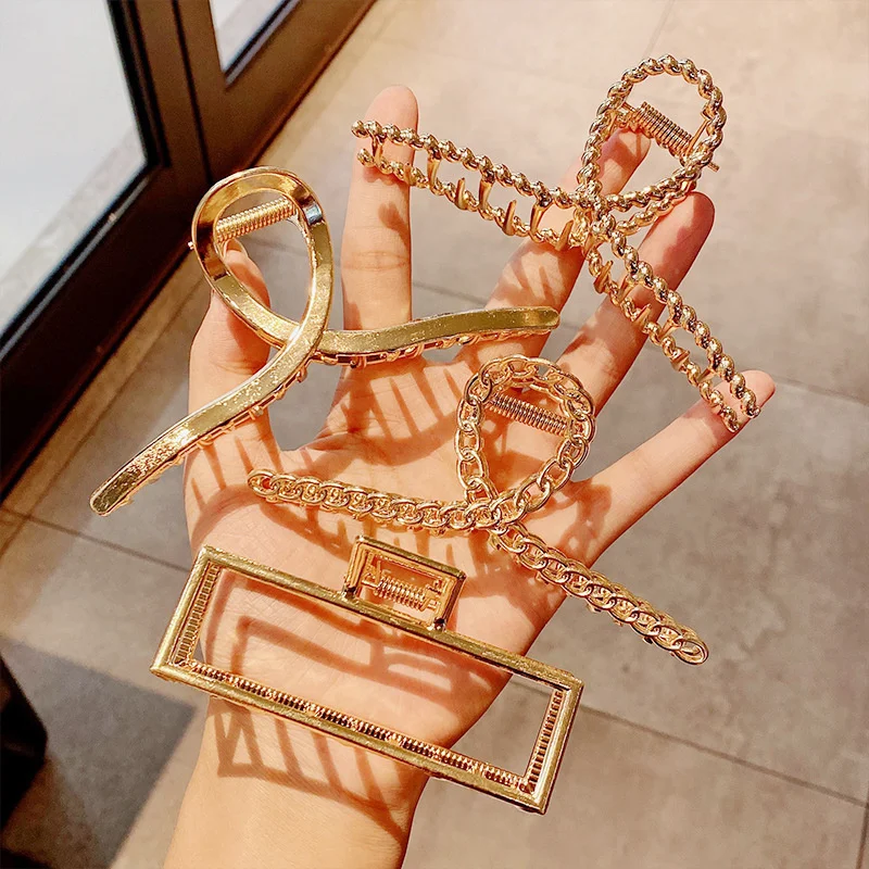 Presilha de Cabelo Metálica Geométrica para Mulheres e Meninas – Grampo Tipo Caranguejo Moderno ✨💇♀️