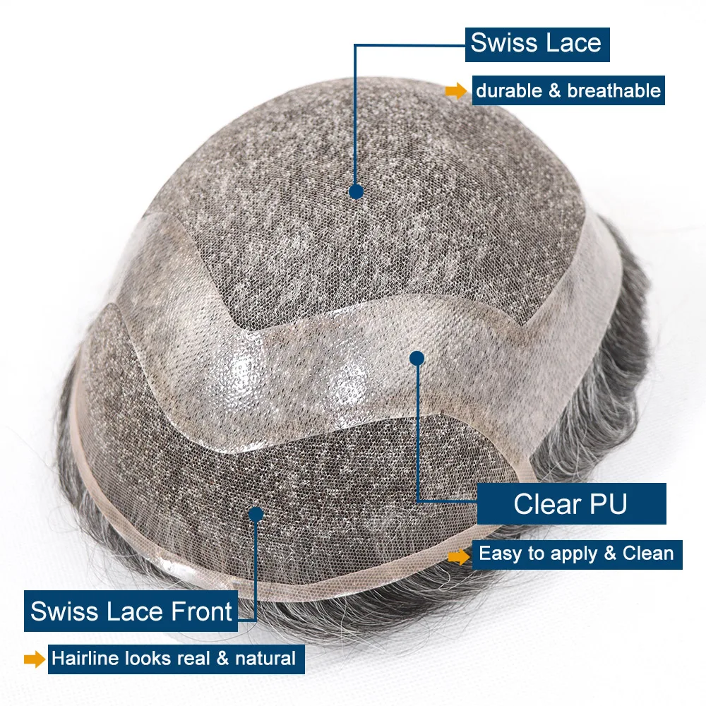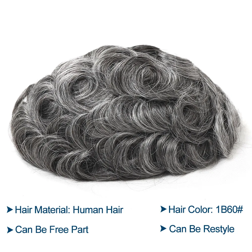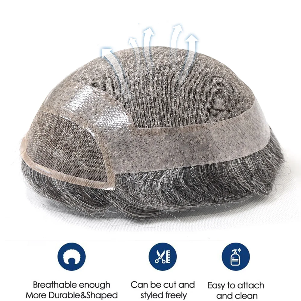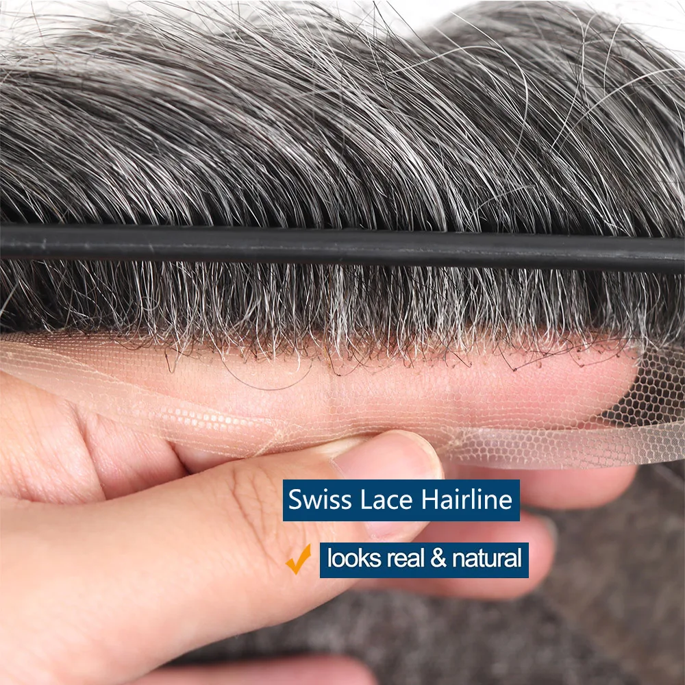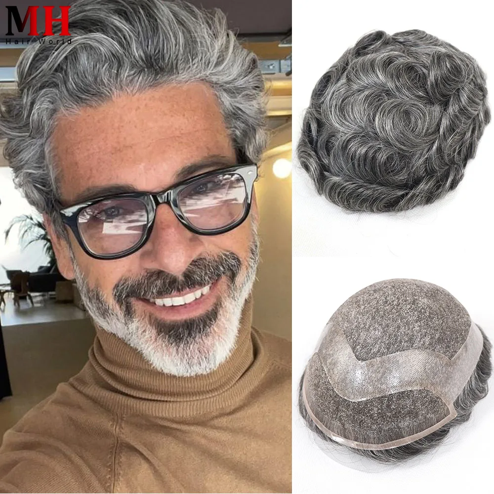 🧑🦳 Prótese Capilar Masculina Cinza em Cabelo Humano com Base de Renda Suíça