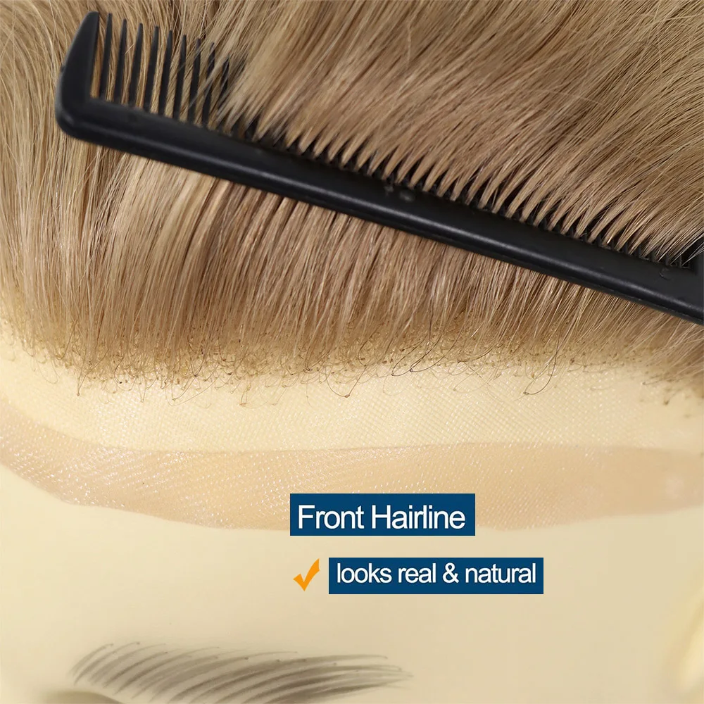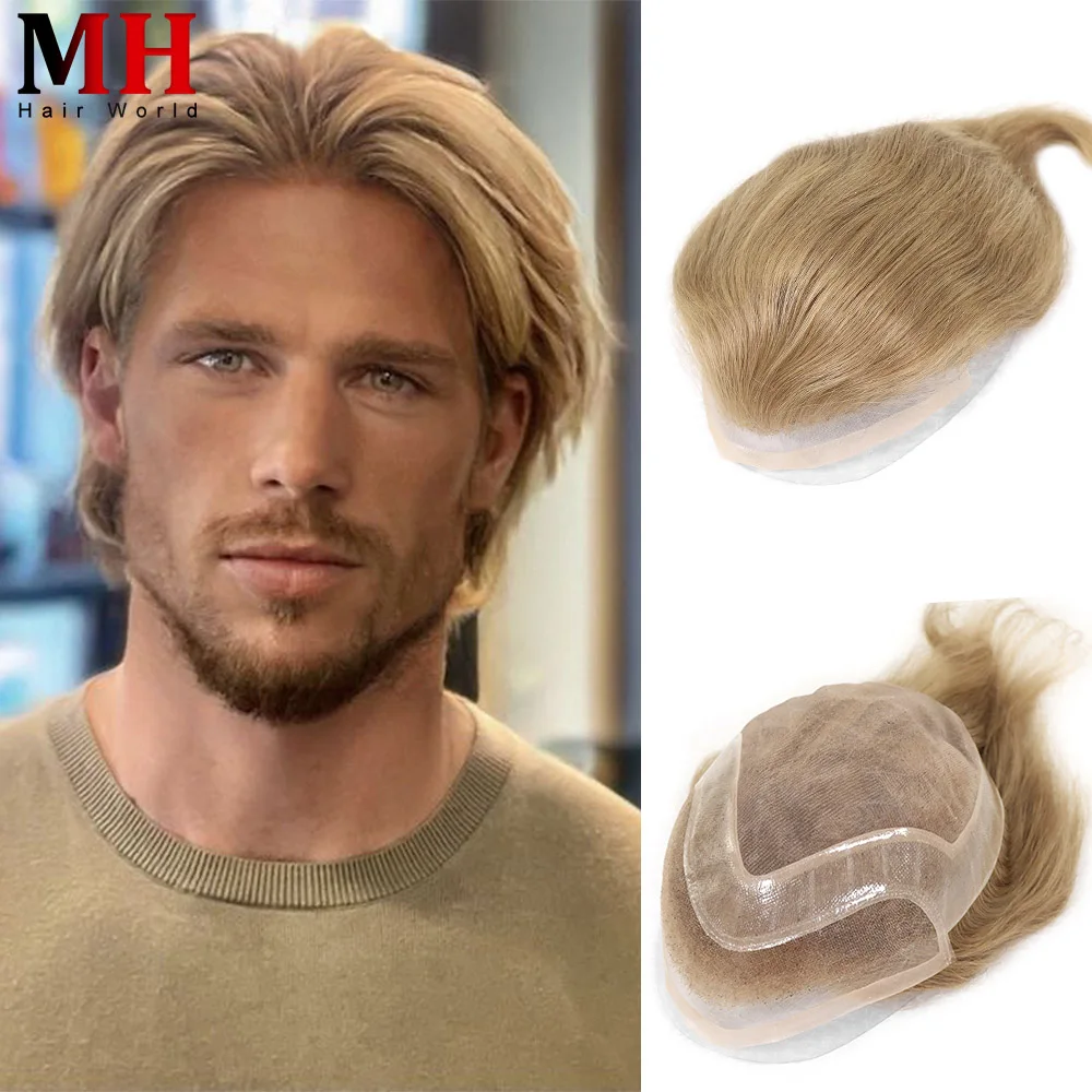 🌟 Prótese Capilar Masculina em Cabelo Humano Loiro 8×10 com Base PU e Tela Respirável 🌟