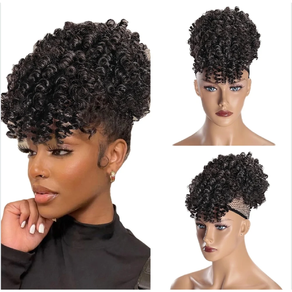 Quer praticidade sem abrir mão do estilo? Este rabo de cavalo afro sintético com franja é perfeito para criar um look moderno, volumoso e cheio de personalidade. Ideal para quem ama o visual coque abacaxi encaracolado, com acabamento natural e aplicação rápida.