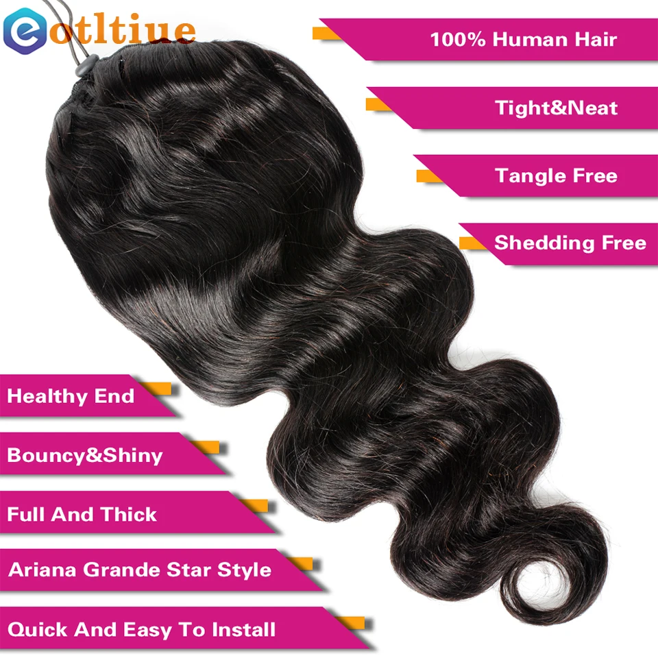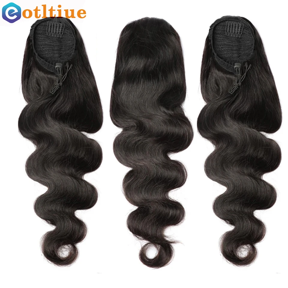 Onda Do Corpo Cabelo Humano Cordão Rabo de Cavalo Clipe Em Cabelo Remy Brasileiro Rabo de Cavalo Cor Natural Resistente Ao Calor Rabo de Cavalo para Mulher