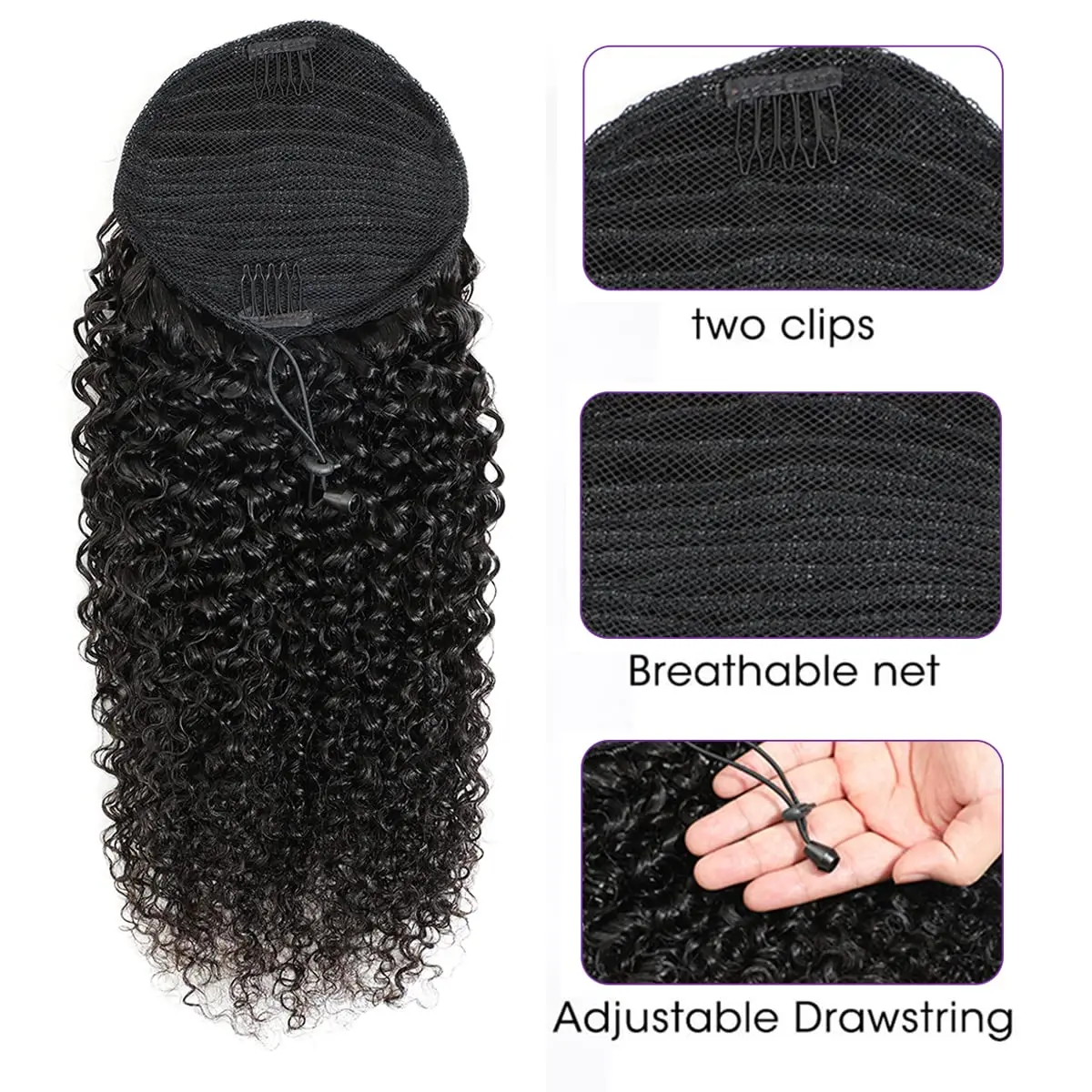 ✨ Rabo de Cavalo de Cabelo Humano Kinky Encaracolado com Clip – Onda Profunda ✨