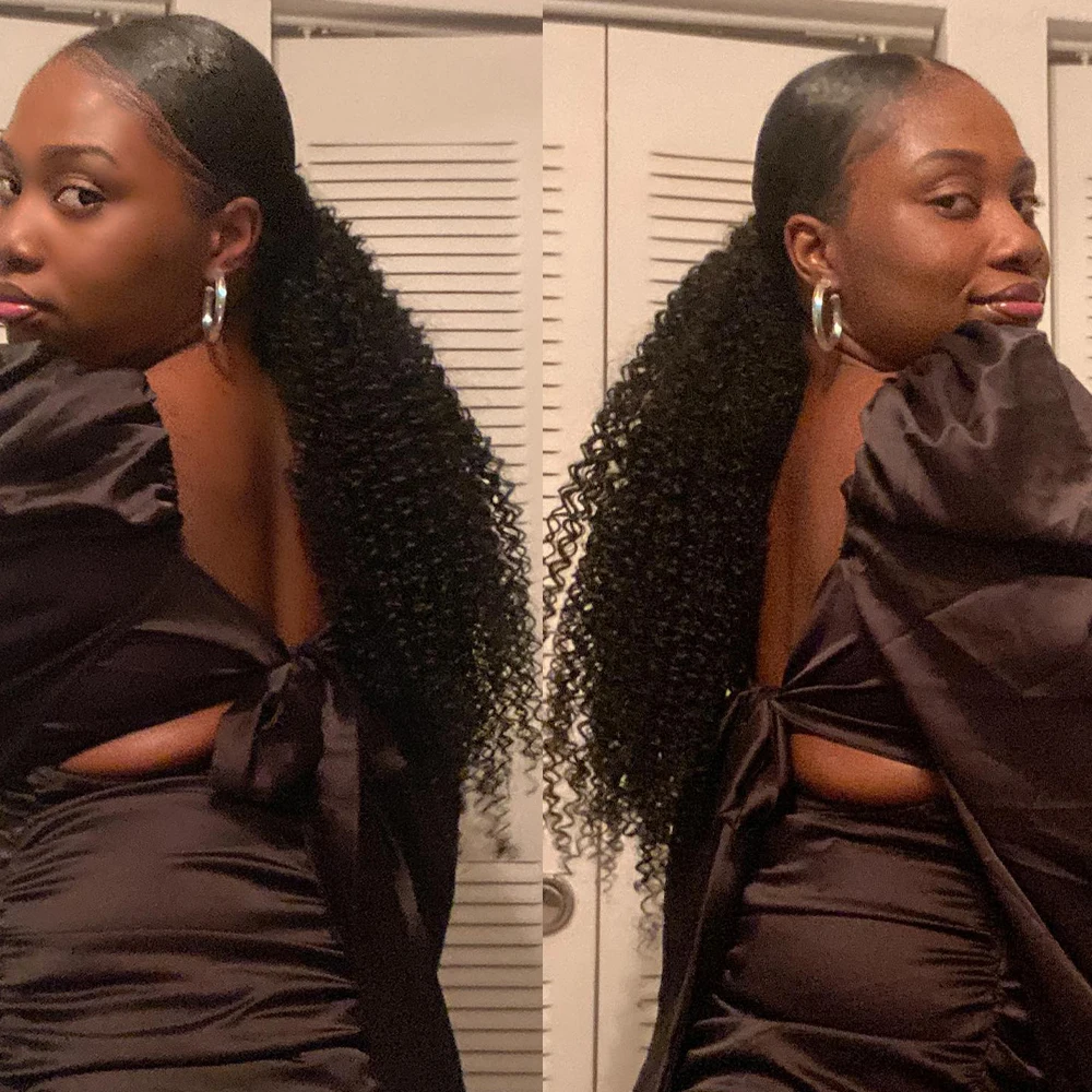 Feito com cabelo humano brasileiro 100% natural, este rabo de cavalo traz cachos definidos no estilo kinky curly, perfeito para mulheres negras que desejam um visual autêntico, cheio de movimento e textura. O sistema de aplicação com clipe e envoltório oferece fixação segura e acabamento natural.