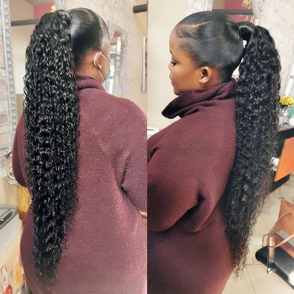 🌟 Rabo de Cavalo Encaracolado para Mulheres Negras – Extensão de Cabelo Humano Brasileiro 120g com Envoltório e Clipe 🌟