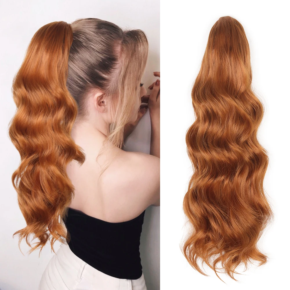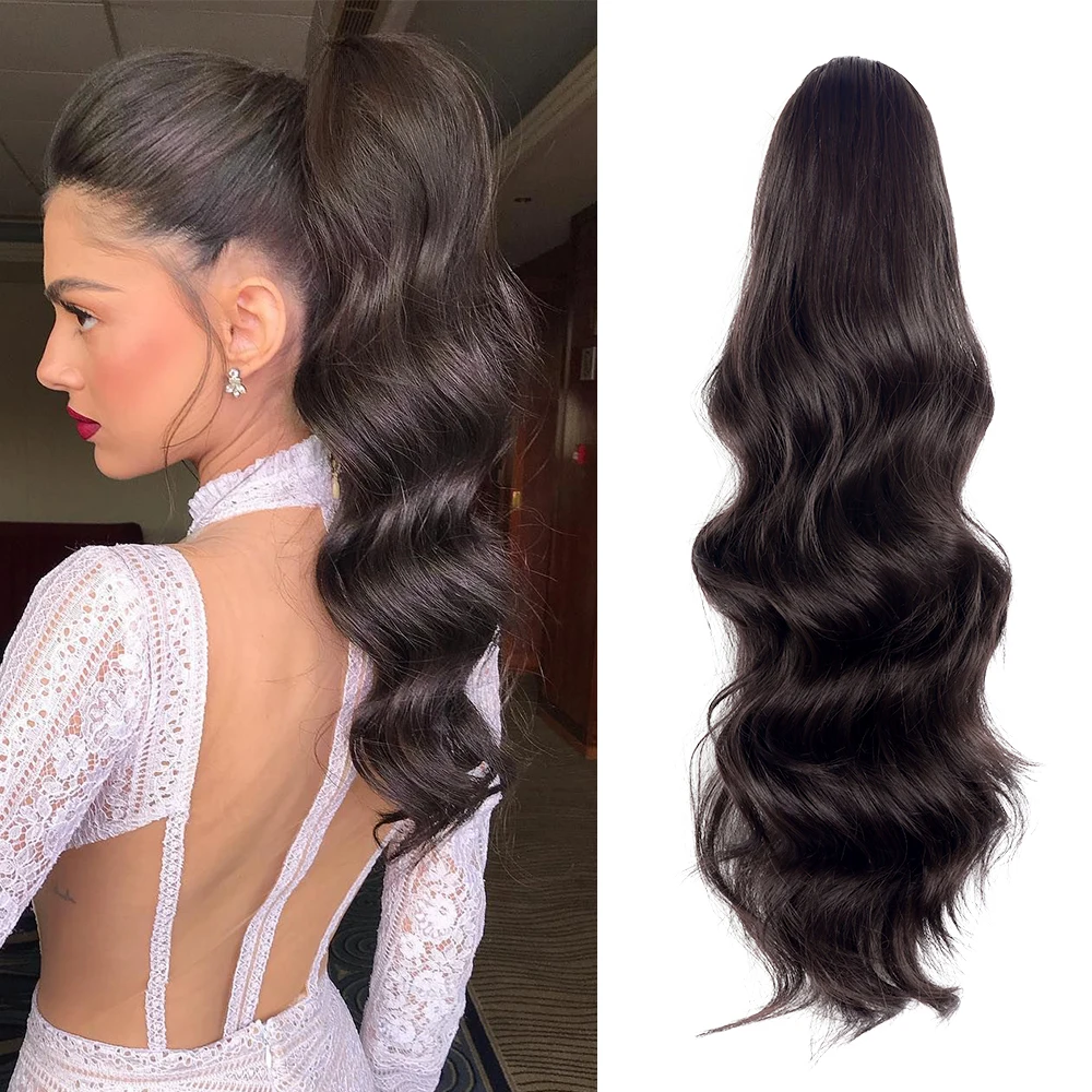 ✨ LEEONS | Rabo de Cavalo Ondulado Longo para Mulher – Cabelo Sintético Resistente ao Calor – 24″ – Marrom ✨