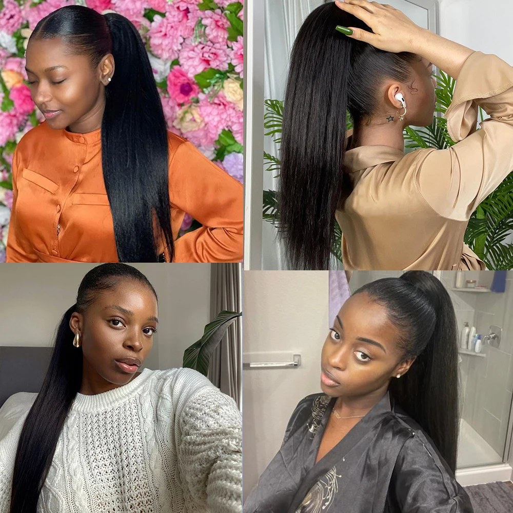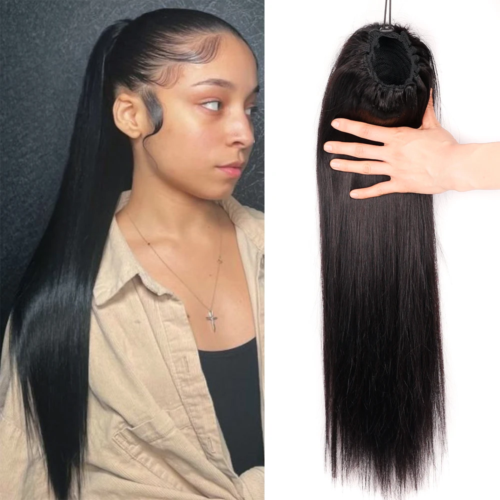 ✨ Aplique Rabo de Cavalo Liso com Cordão – Cabelo Humano Brasileiro Remy Preto | 100g | 30cm a 60cm ✨