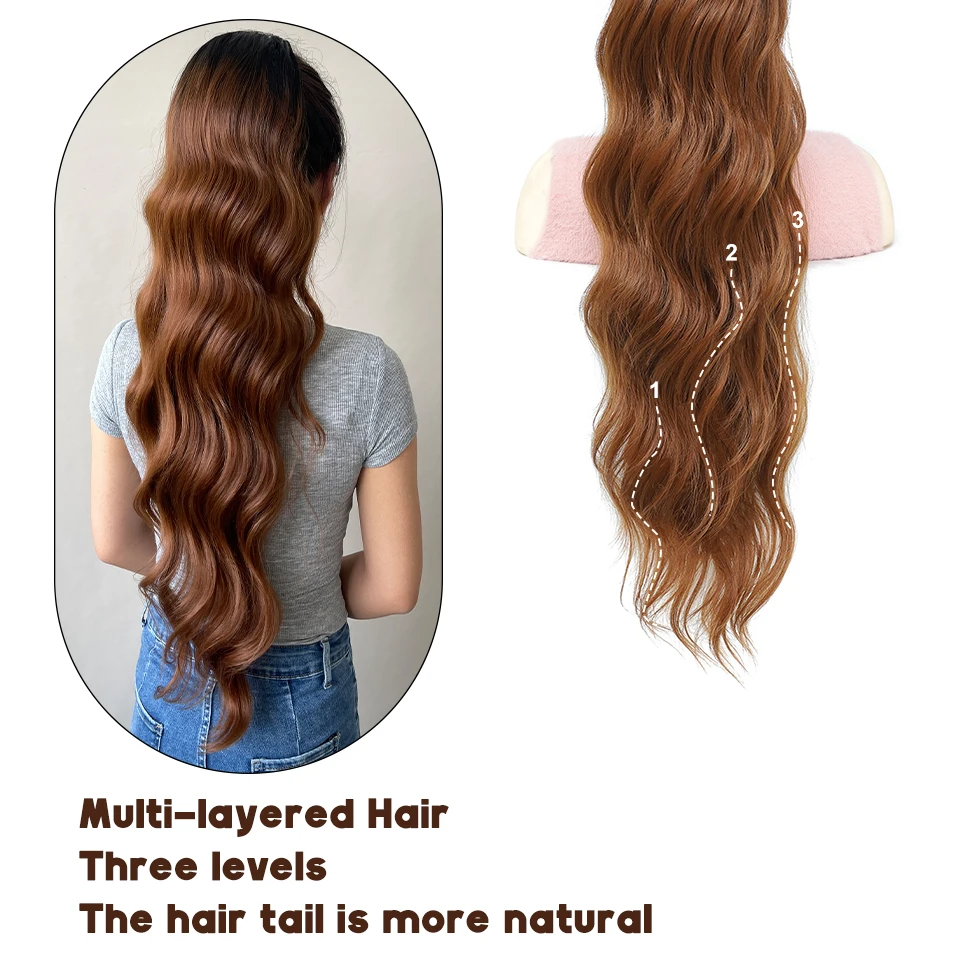 Com esta extensão de rabo de cavalo ondulado resistente ao calor, você conquista comprimento e elegância em poucos minutos.