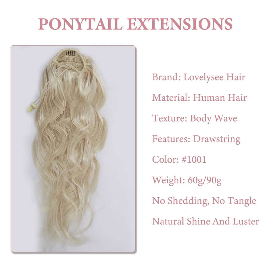 1. nome do produto: 100% remy rabo de cavalo cabelo humano