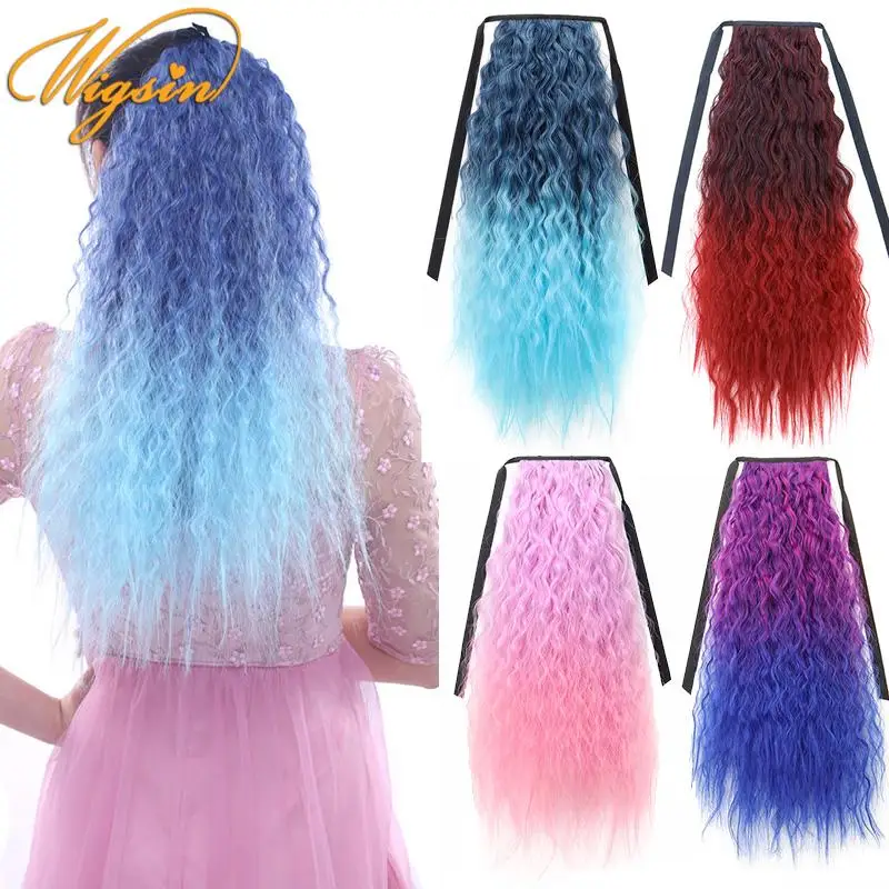 💖 Rabo de Cavalo Postiço Sintético Longo 24” Encaracolado Kinky Ombre com Cordão e Clipe – Elegância Instantânea para Mulheres ✨