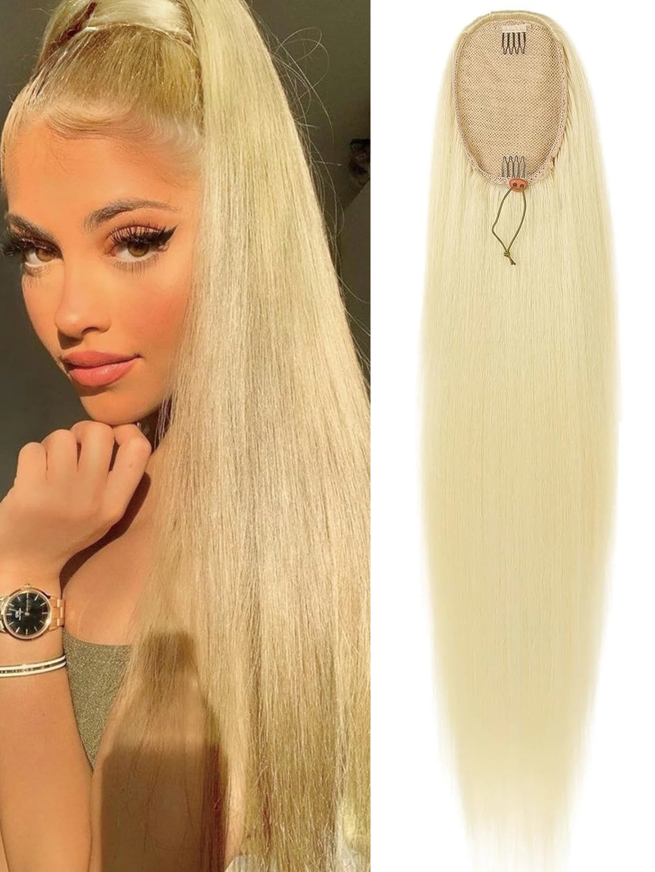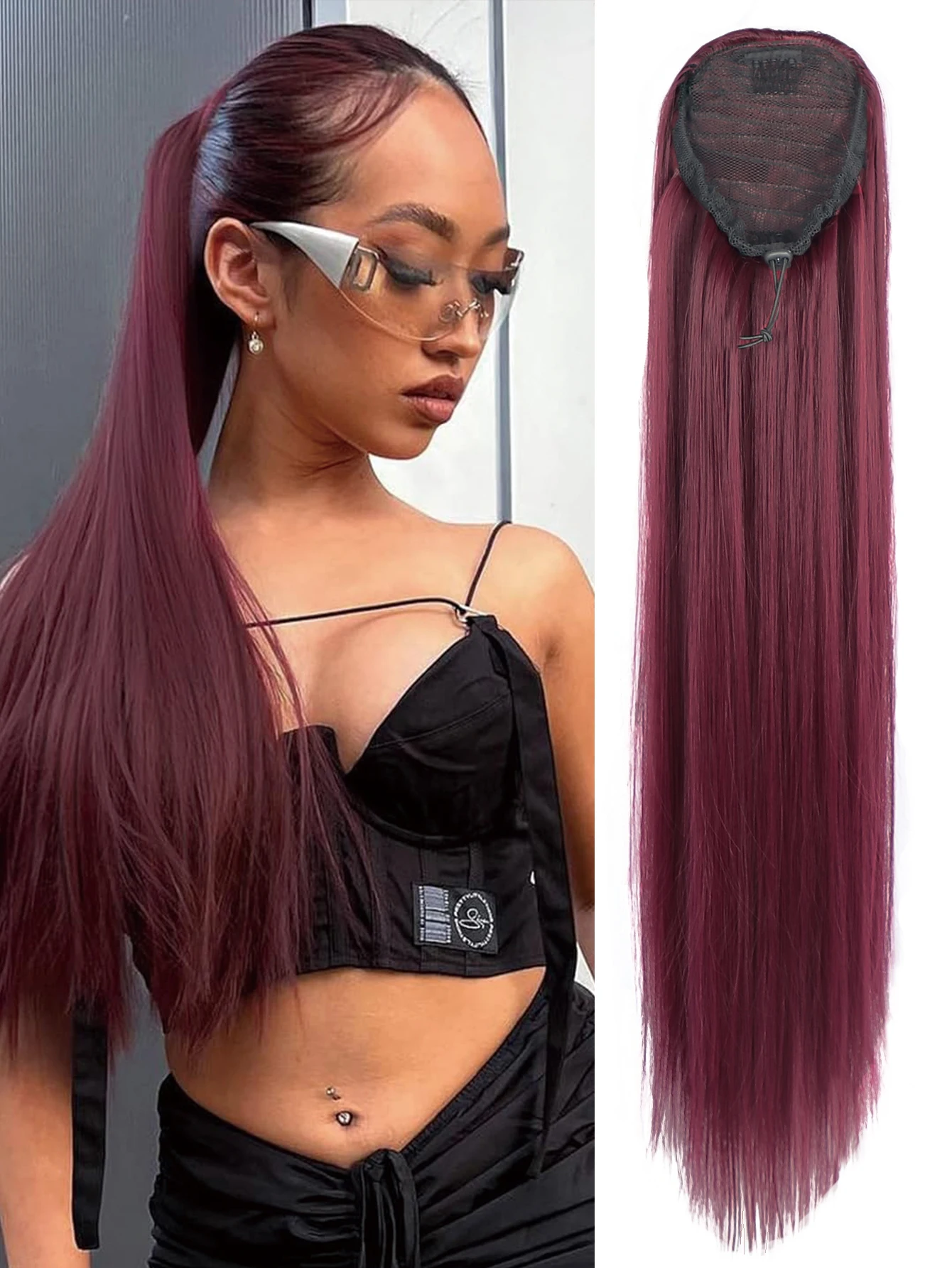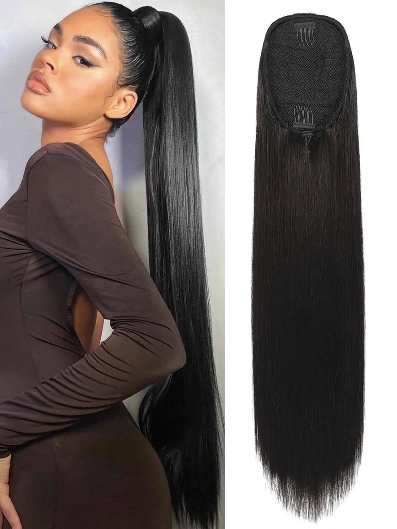 💖 Rabo de Cavalo Postiço Sintético Longo e Liso com Cordão – Macio, Natural e Resistente ao Calor ✨