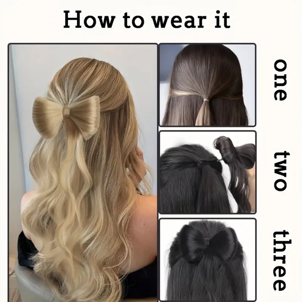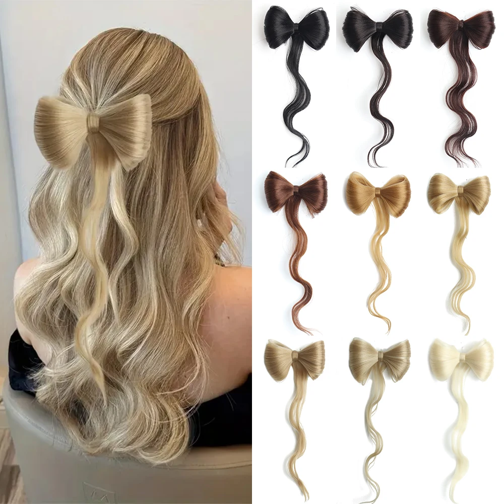 Início Rabo de Cavalo Sintético Rabo de Cavalo Postiço Sintético Longo Ondulado com Garra e Laço – Extensão Elegante para Uso Diário – Azqueen