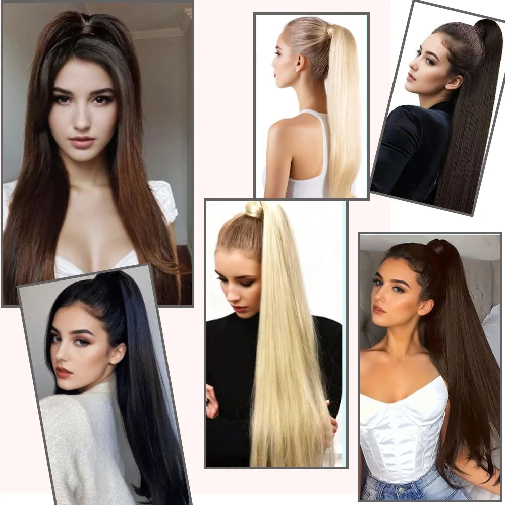 Esse rabo de cavalo sintético liso oferece um acabamento natural e volumoso, ideal para quem quer alongar o cabelo rapidamente sem comprometer o estilo. Com textura lisa e cor preta intensa, é fácil de prender graças ao clipe e ao design em envoltório que garante fixação segura e confortável.
