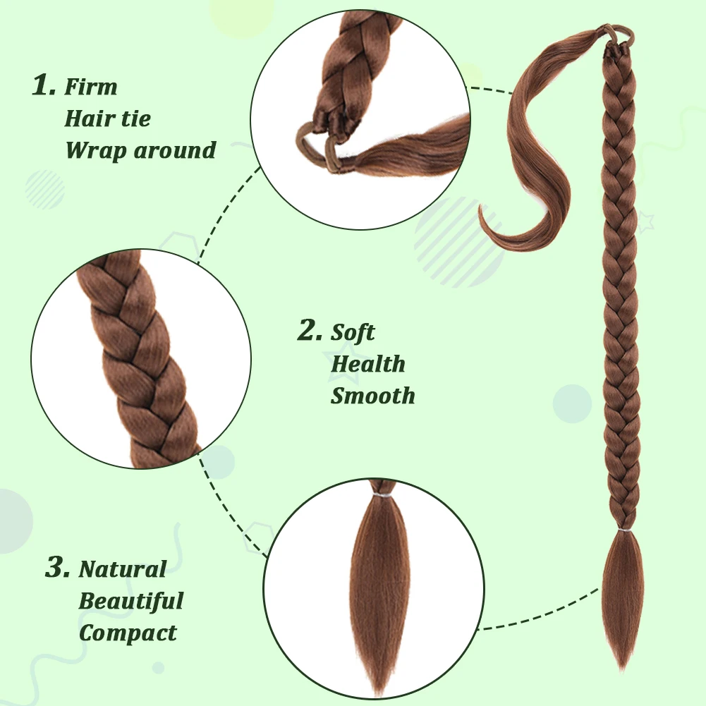 💁♀️ Rabo de Cavalo Trançado Sintético Ombre – Extensão de Cabelo Longo com Trança Boxeadora e Elástico Envolvente