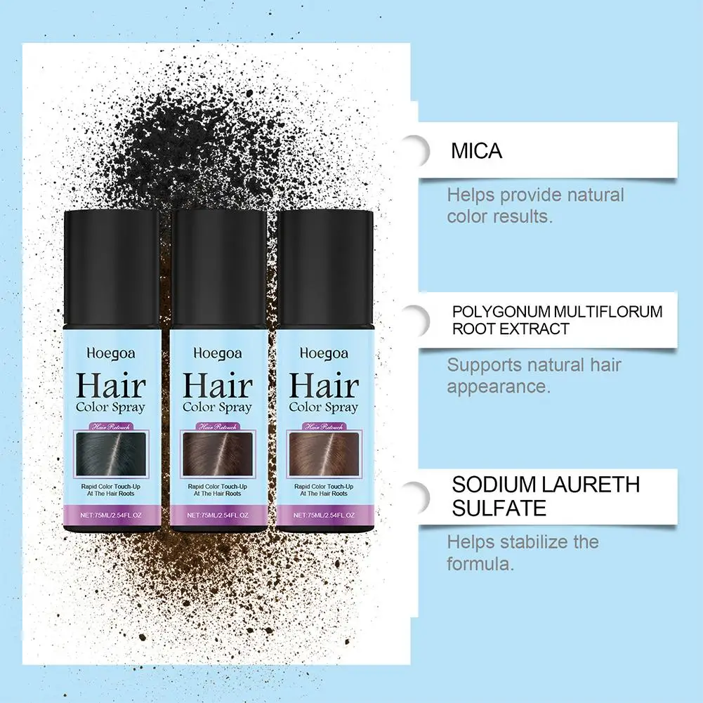 Ideal para quem busca retoque de raiz rápido, spray tonalizante temporário e cobertura instantânea de cabelos grisalhos.