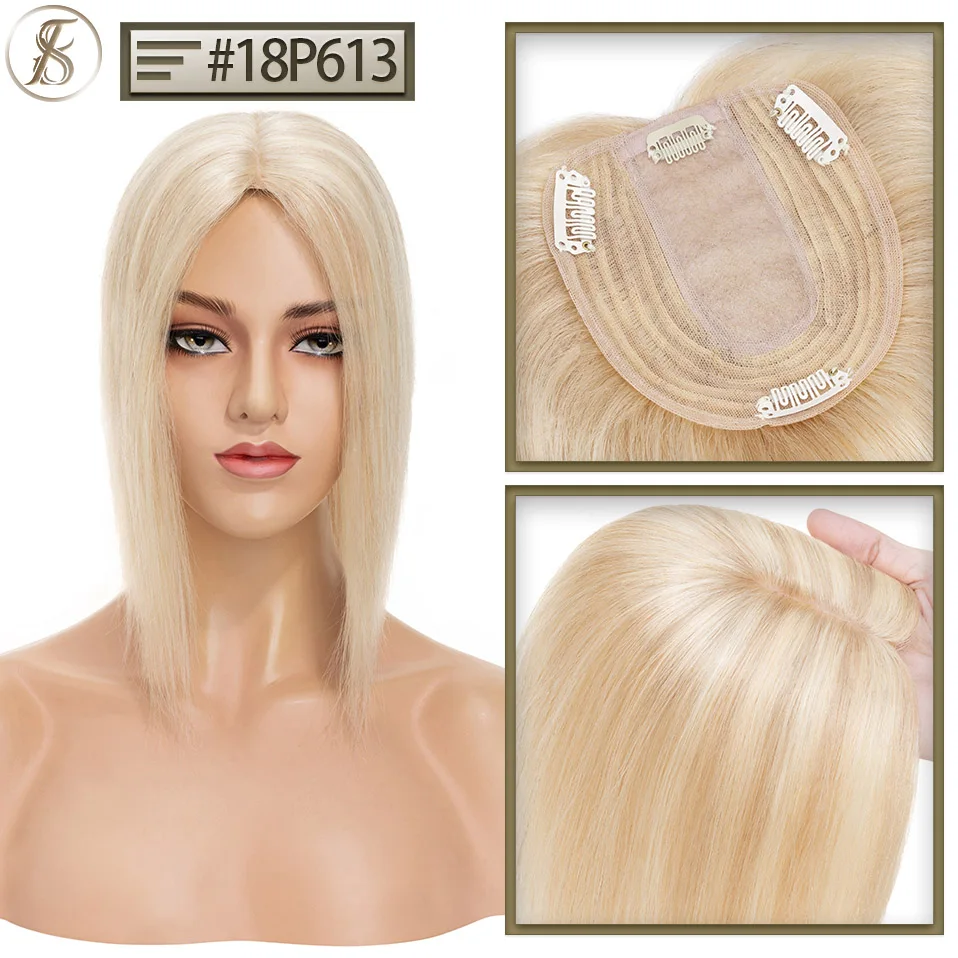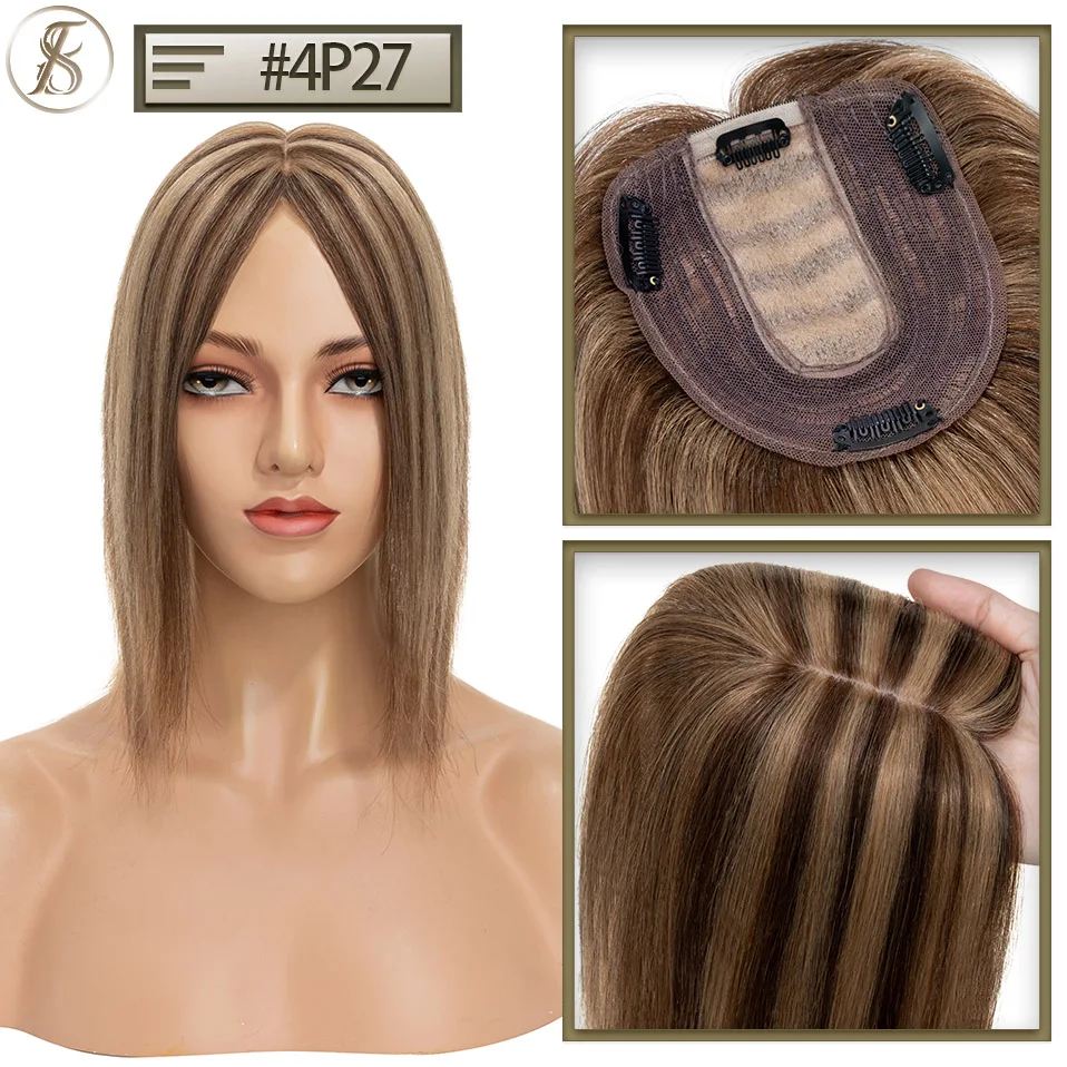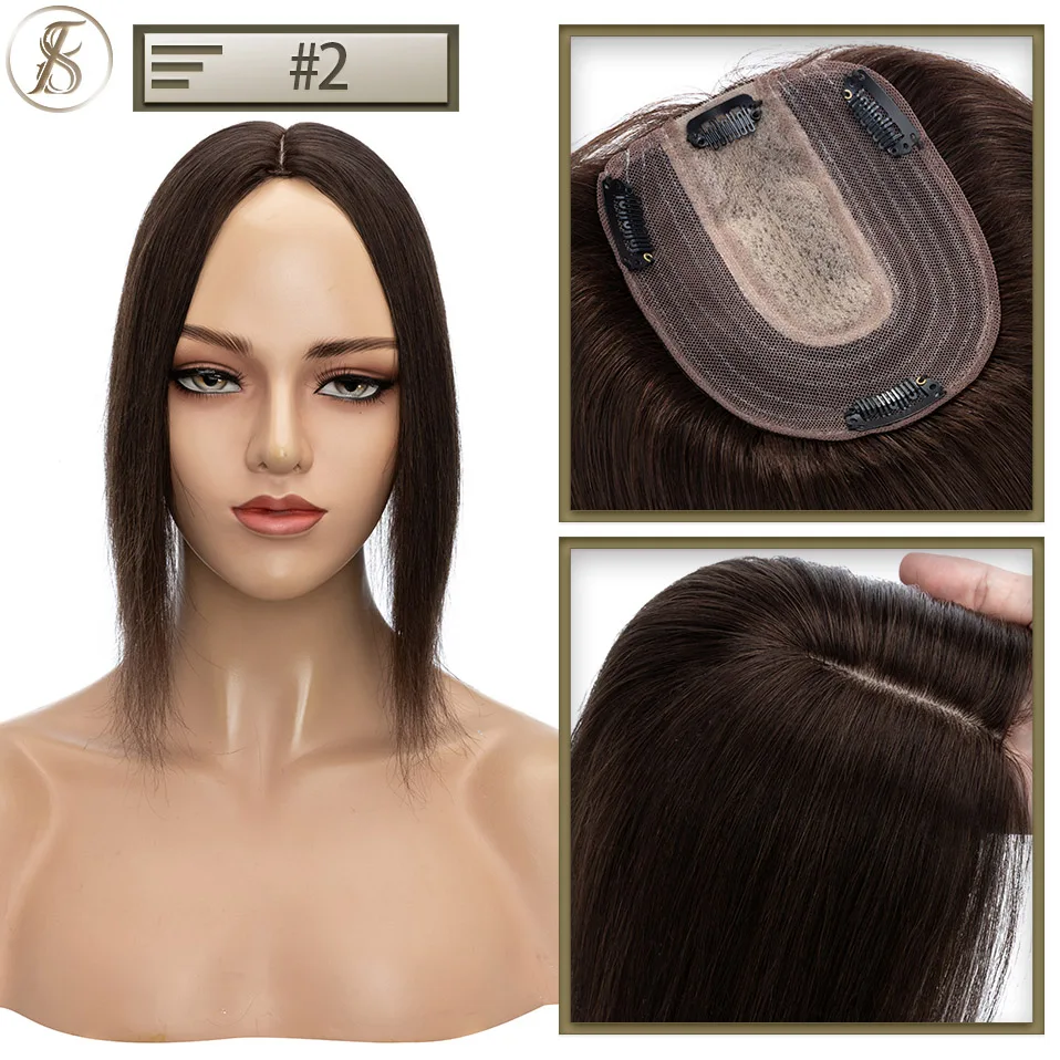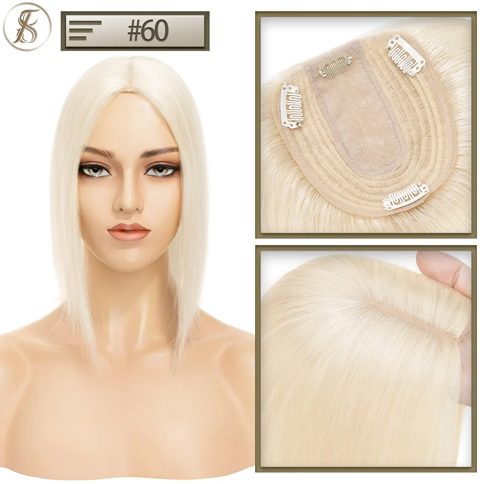 ✨ Topper de Cabelo Feminino em Cabelo Humano Natural 10x12cm – Com Grampo | Cores: Loiro, Castanho e Preto ✨