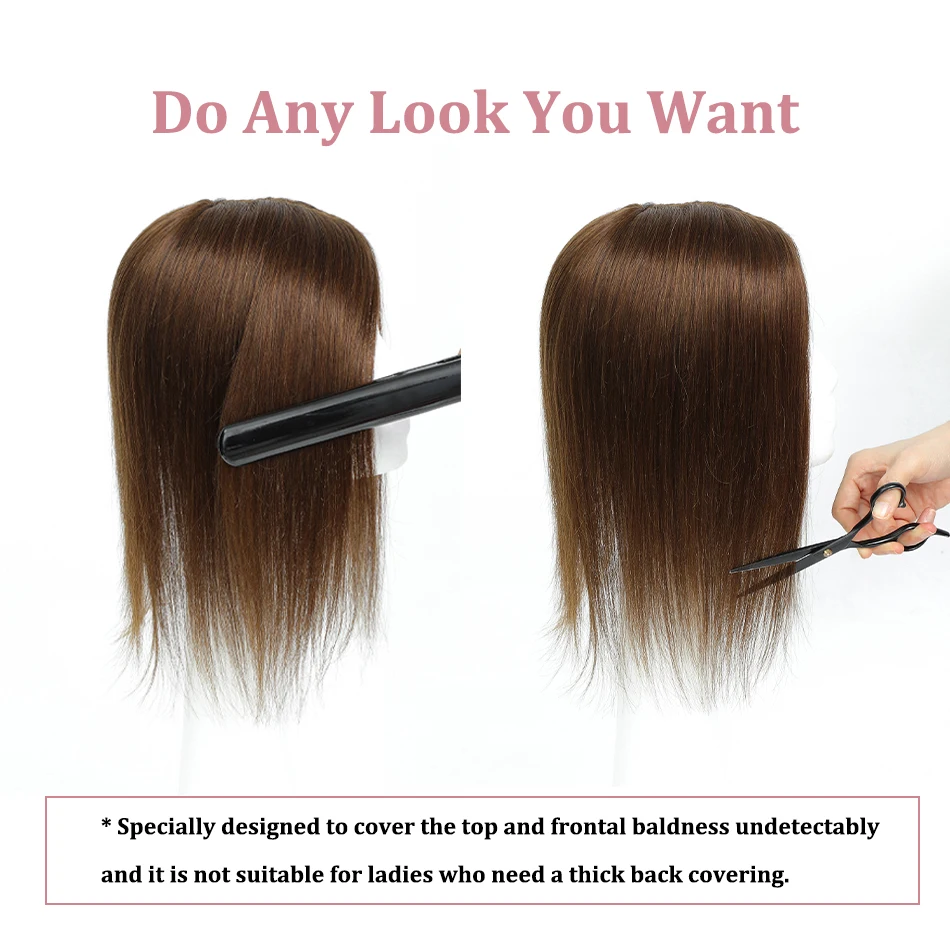 Especialmente projetado para cobrir a calvície superior e frontal de forma indetectável.