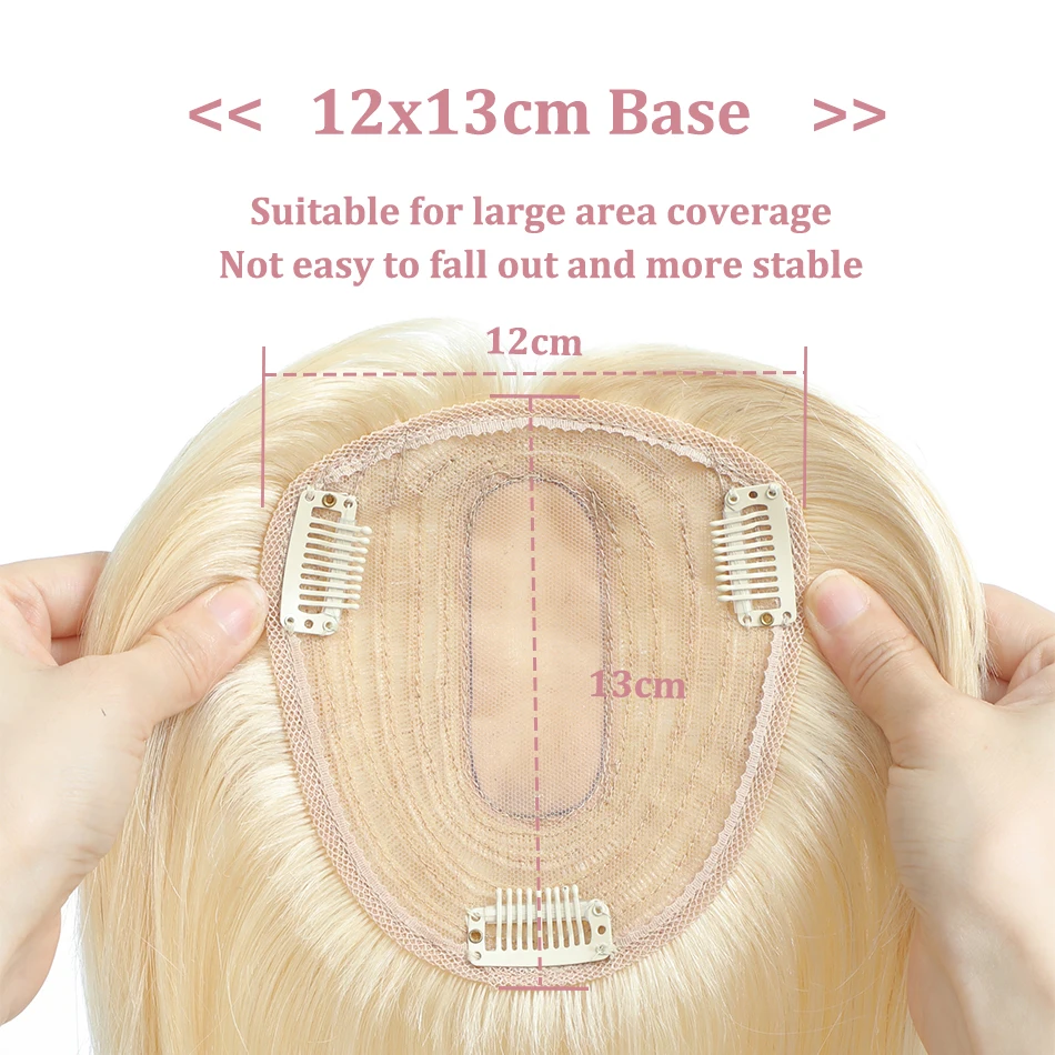 ✨ Topper de Cabelo Humano Liso Brasileiro Remy 100% Natural – Base Couro Cabeludo 12×13 cm com Grampos para Mulheres (25 a 35 cm) ✨