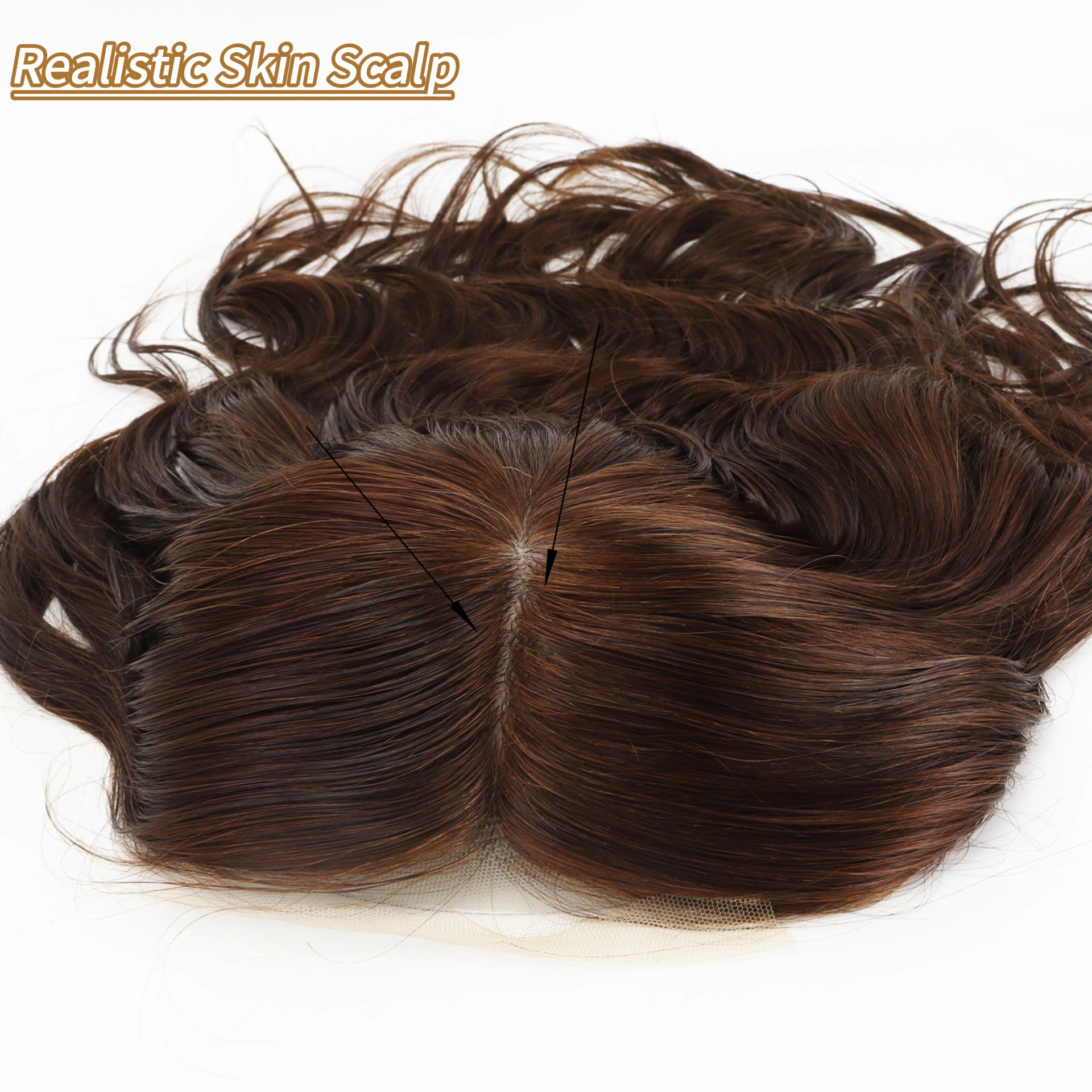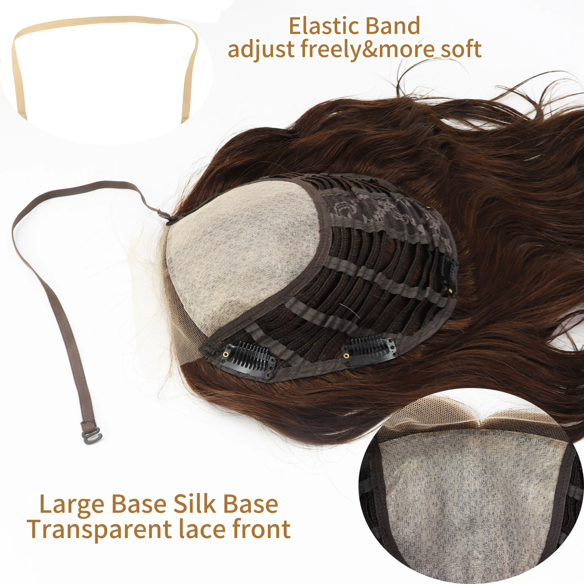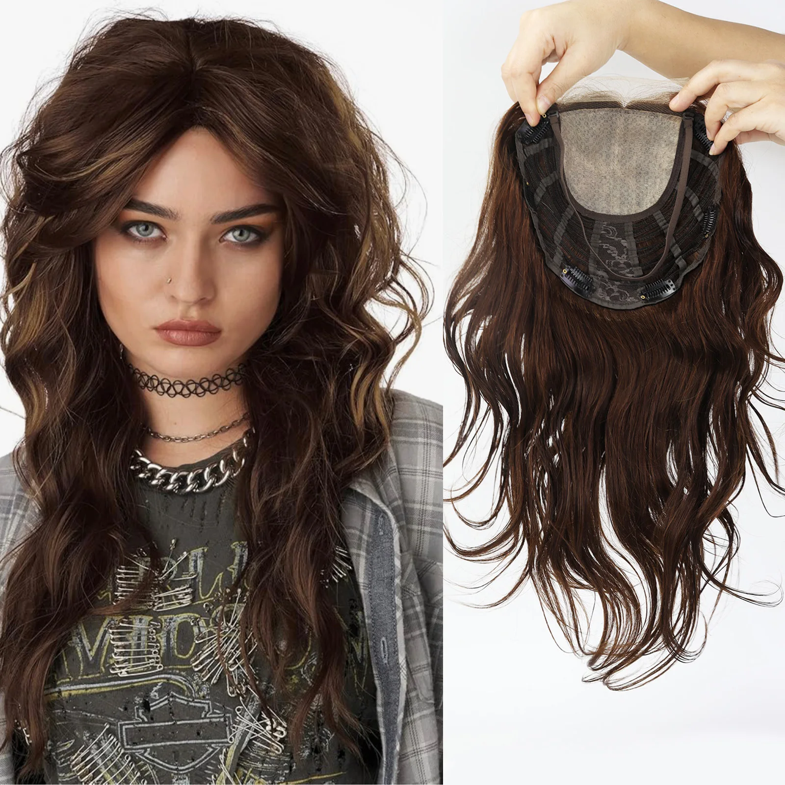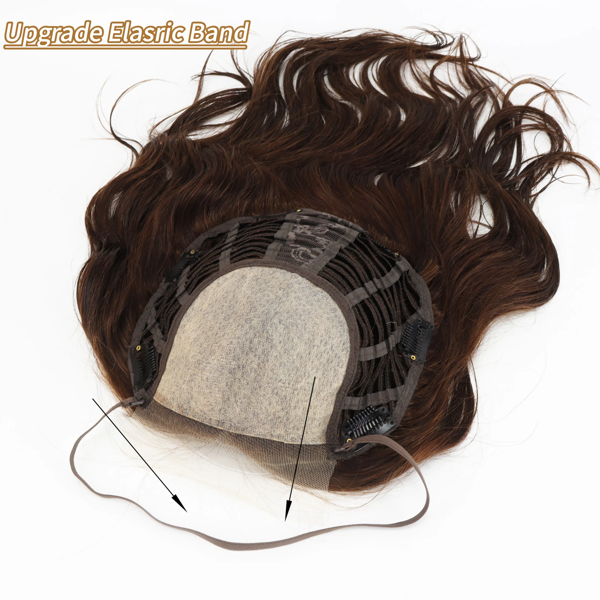Confeccionado com cabelo humano Remy de primeira qualidade, este topper oferece características que o distinguem no mercado europeu. A base de seda combinada com renda frontal cria um efeito de couro cabeludo extraordinariamente realista, permitindo penteados versáteis e naturais. A textura ondulada confere movimento leve e sofisticado, enquanto a faixa elástica ajustável e as presilhas de fixação garantem uma segurança máxima durante todo o dia.