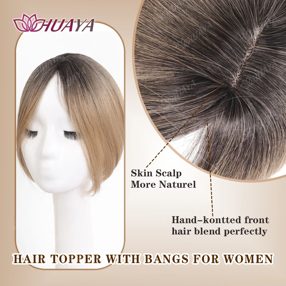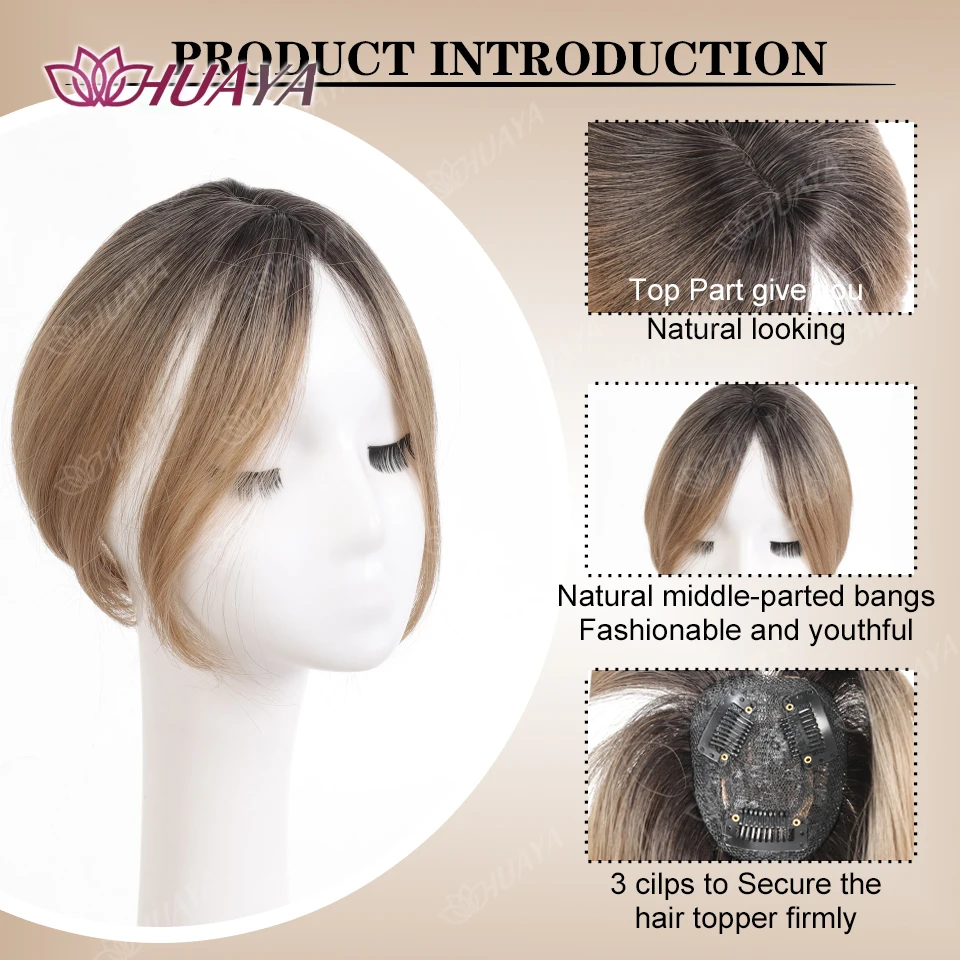 ✨ Topper de Cabelo Sintético com Franja Central Invisível – Disponível nas Cores Marrom, Preto, Dourado e Ombre