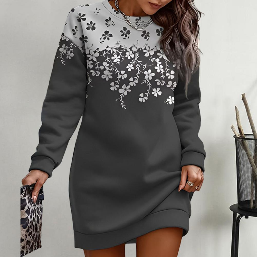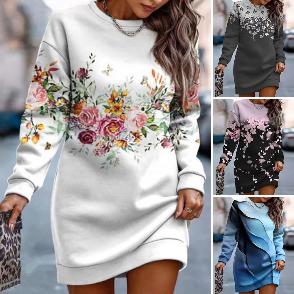 Apresentamos o Vestido Casual de Moletom com gola O, uma peça que combina estilo e versatilidade. Com um design moderno, mangas longas e uma adorável estampa floral, este vestido é a escolha ideal para qualquer evento.