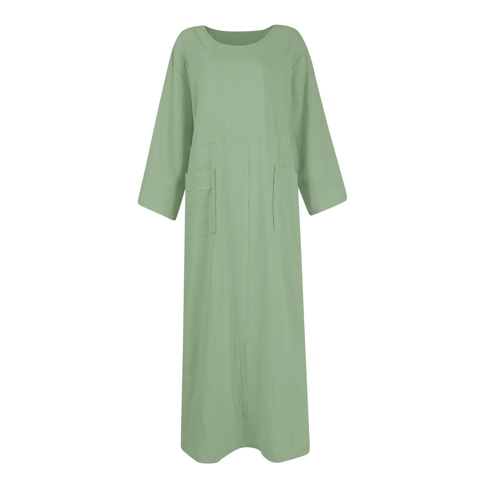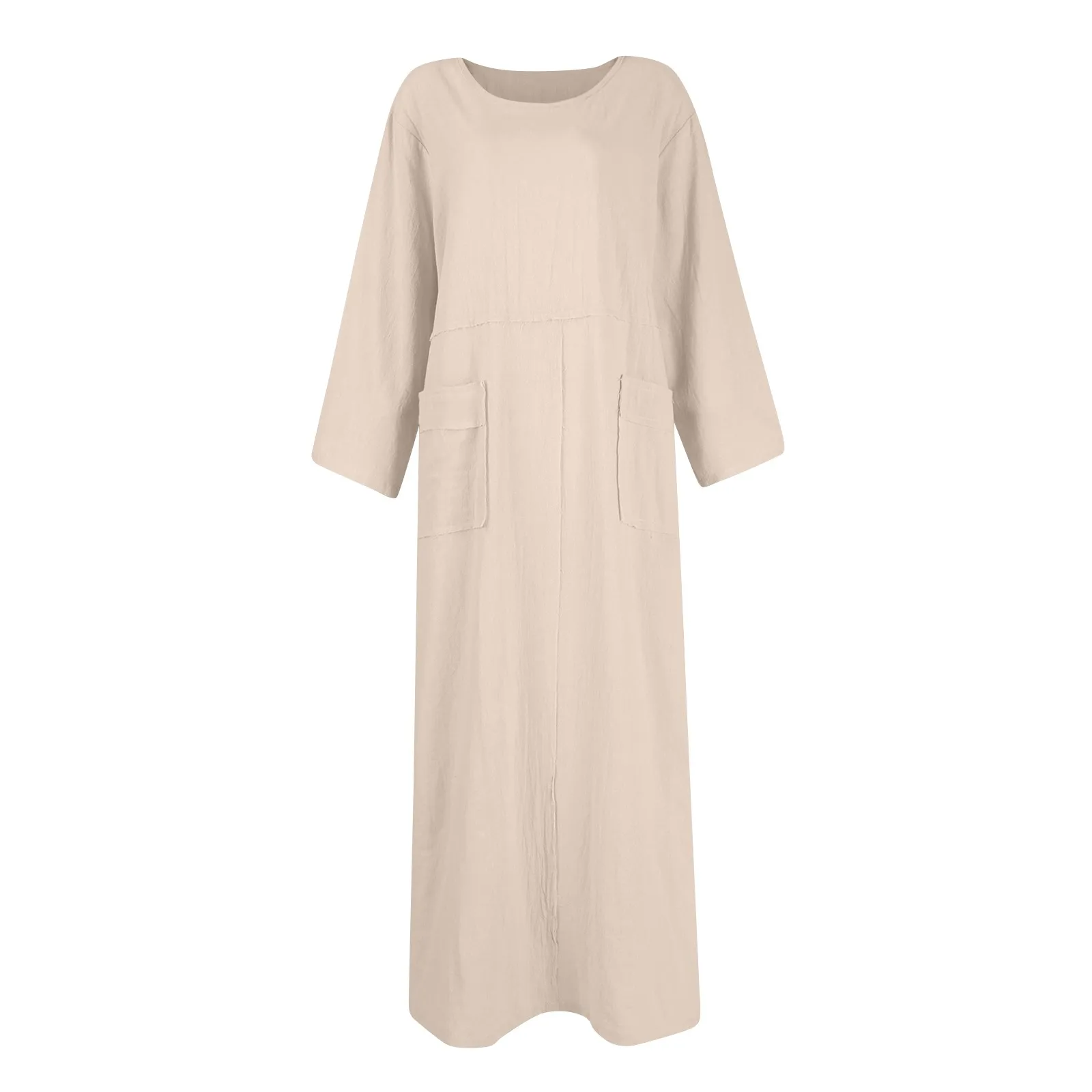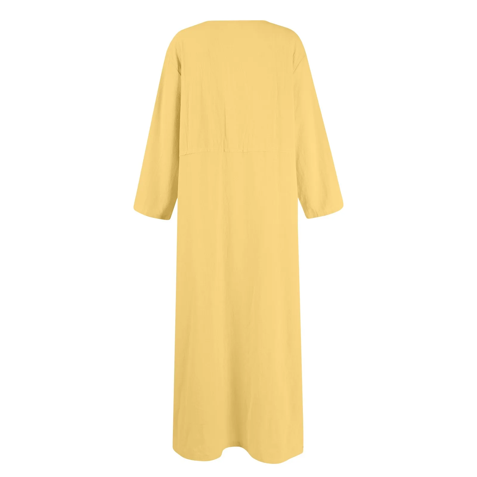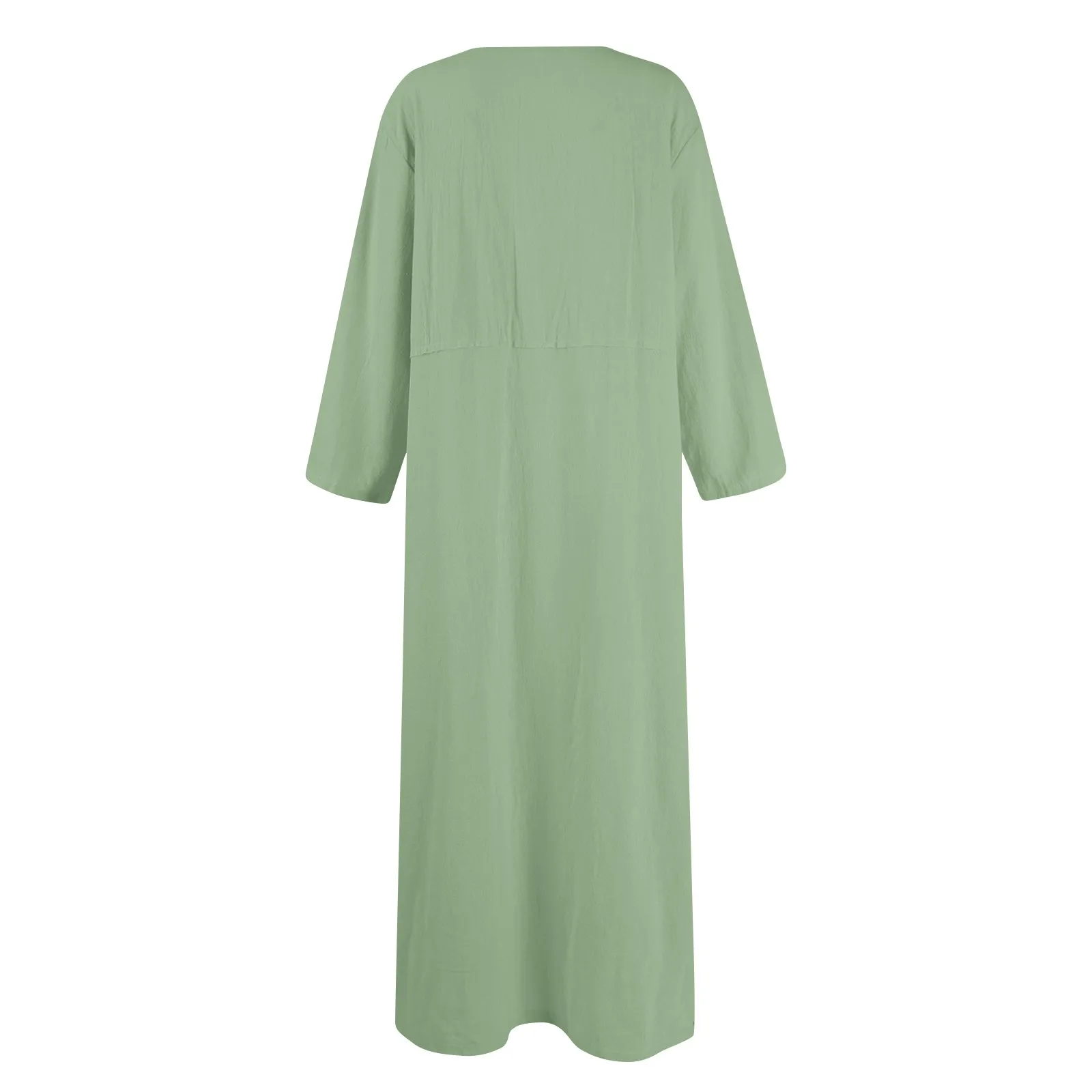 🌟 Vestido Longo de Linho e Algodão com Manga Longa e Gola – Casual e Confortável para o Verão! 🌟