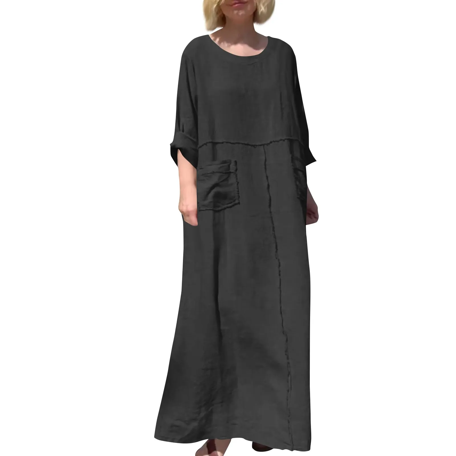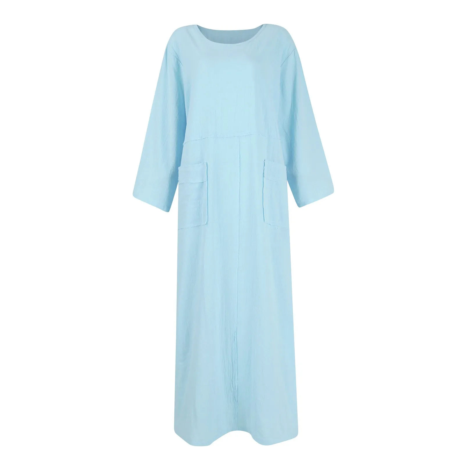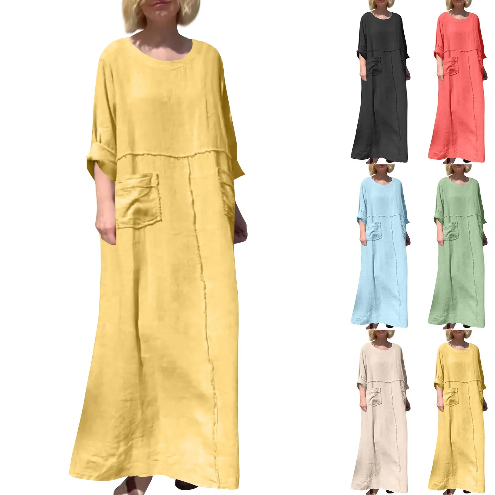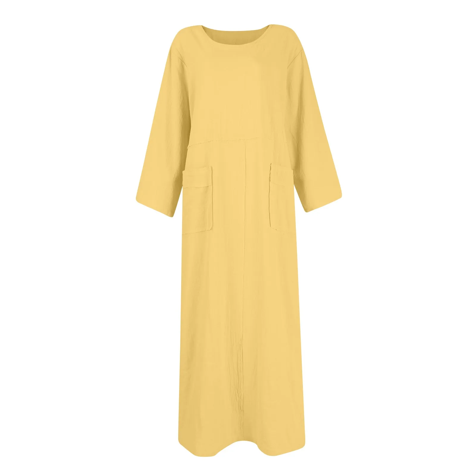 🌟 Vestido Longo de Linho e Algodão com Manga Longa e Gola – Casual e Confortável para o Verão! 🌟